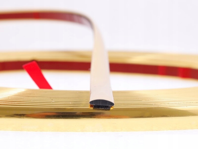 Гибкая декоративная полоса золотистого цвета устойчива к погодным условиям. Сборка очень проста. По низу полоска закреплена прочным двусторонним скотчем.