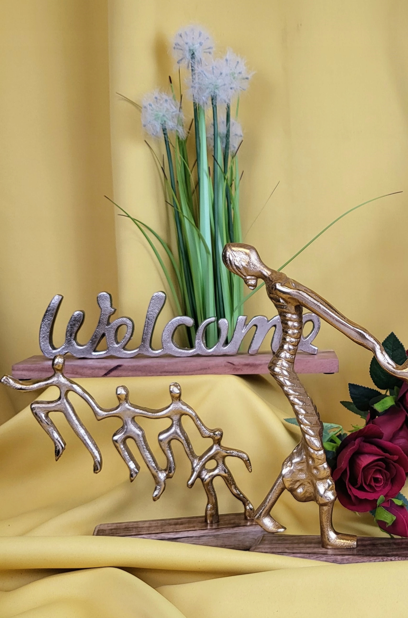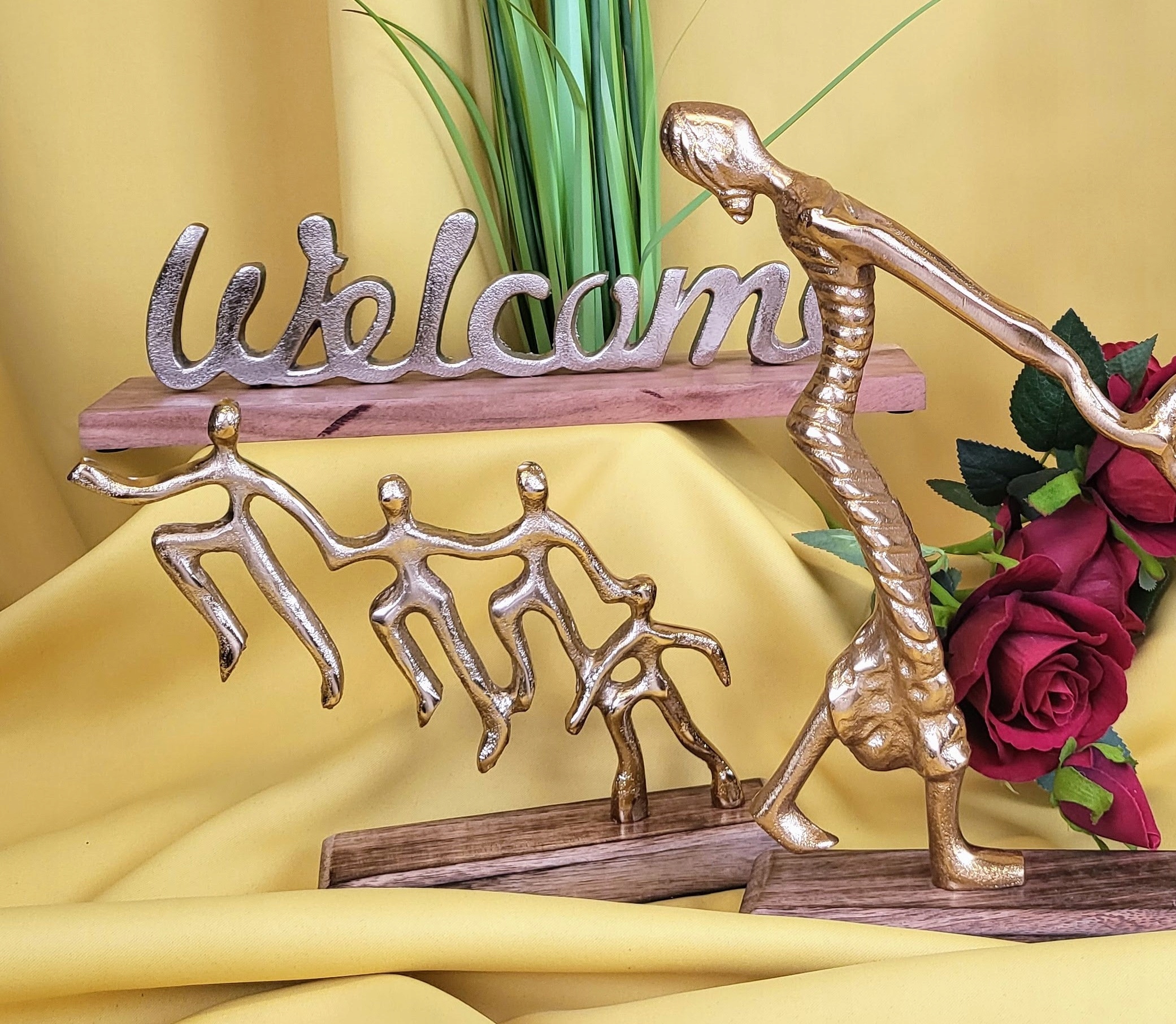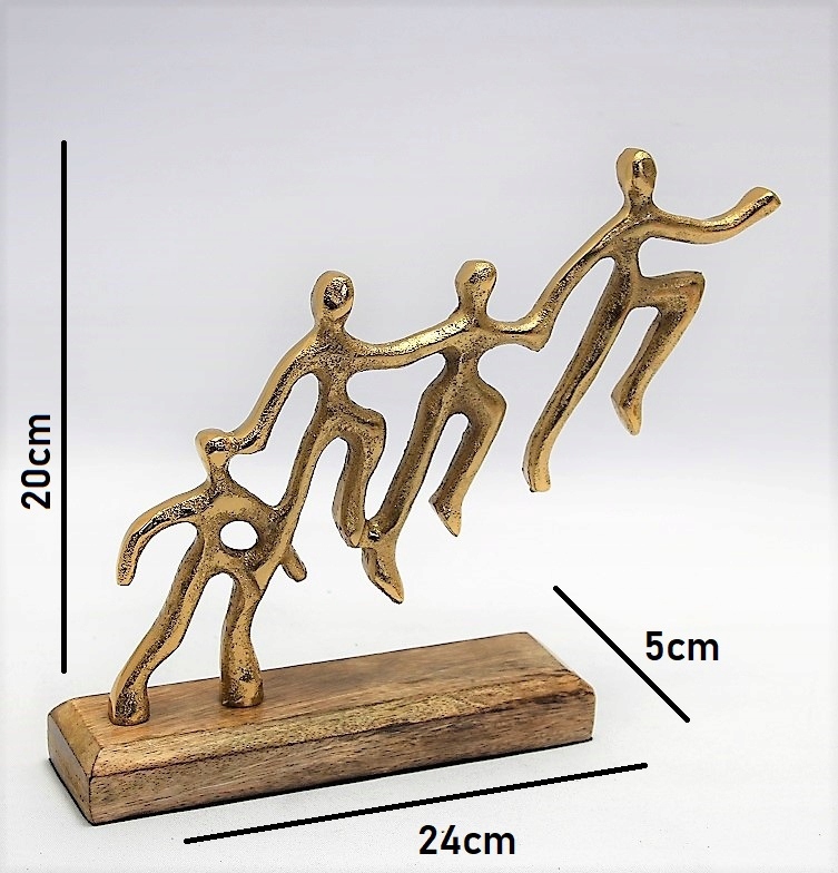 Оригинальная статуэтка с изображением человечков золотого цвета на деревянной основе. Его можно интерпретировать как группу друзей или семью. Он хорошо подойдет в качестве украшения как для квартир в классическом, так и в современном стиле. Его уникальный дизайн гарантирует, что никто не пройдет мимо него равнодушно. Идеальный подарок другу.