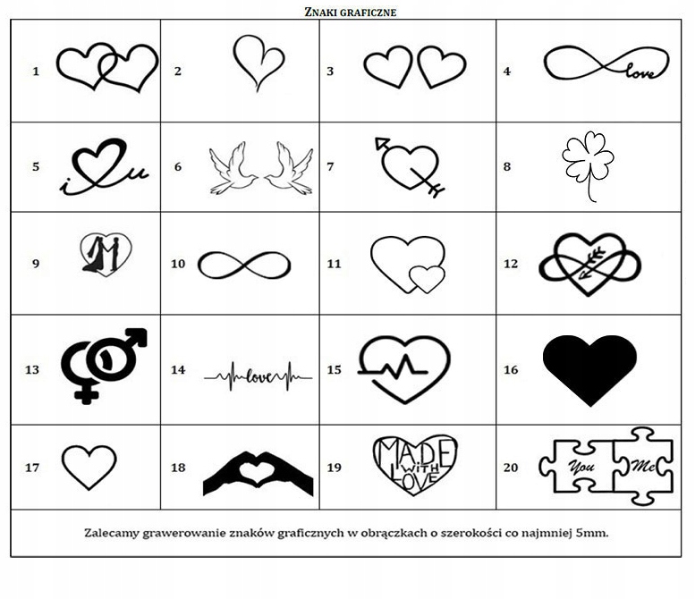 - Гравировка (содержание до 24 символов и номера шрифта) или номер графического символа.