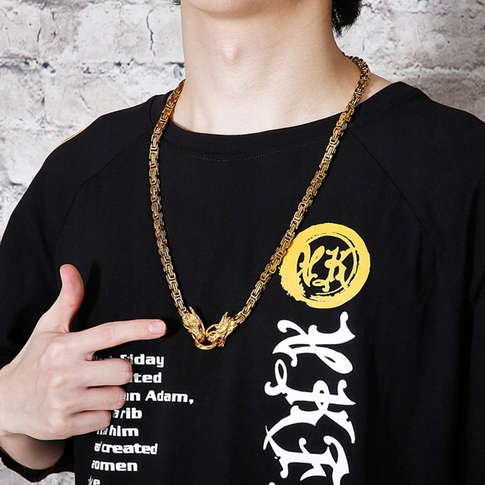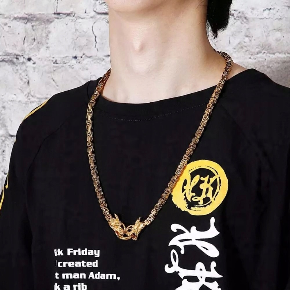 Подвеска с мотивом идеально подходит для викингов. > Любители, безусловно, станут прекрасным дополнением вашего гардероба. Глянцевое колье из ценного королевского плетения шириной 6 мм, увенчанное деталями в виде драконов, которые одновременно выполняют функцию застежки.