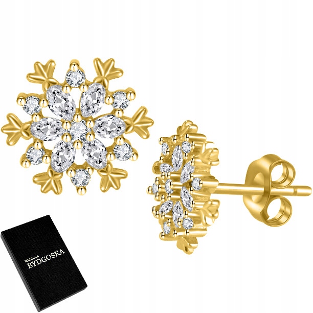 ЗОЛОТІ СЕРЕЖКИ-ГВОЗДИ, СЕРЕЖКИ-ГВОЗДИ СНІЖИНКИ НА РІЗДВО СРІБЛО 925