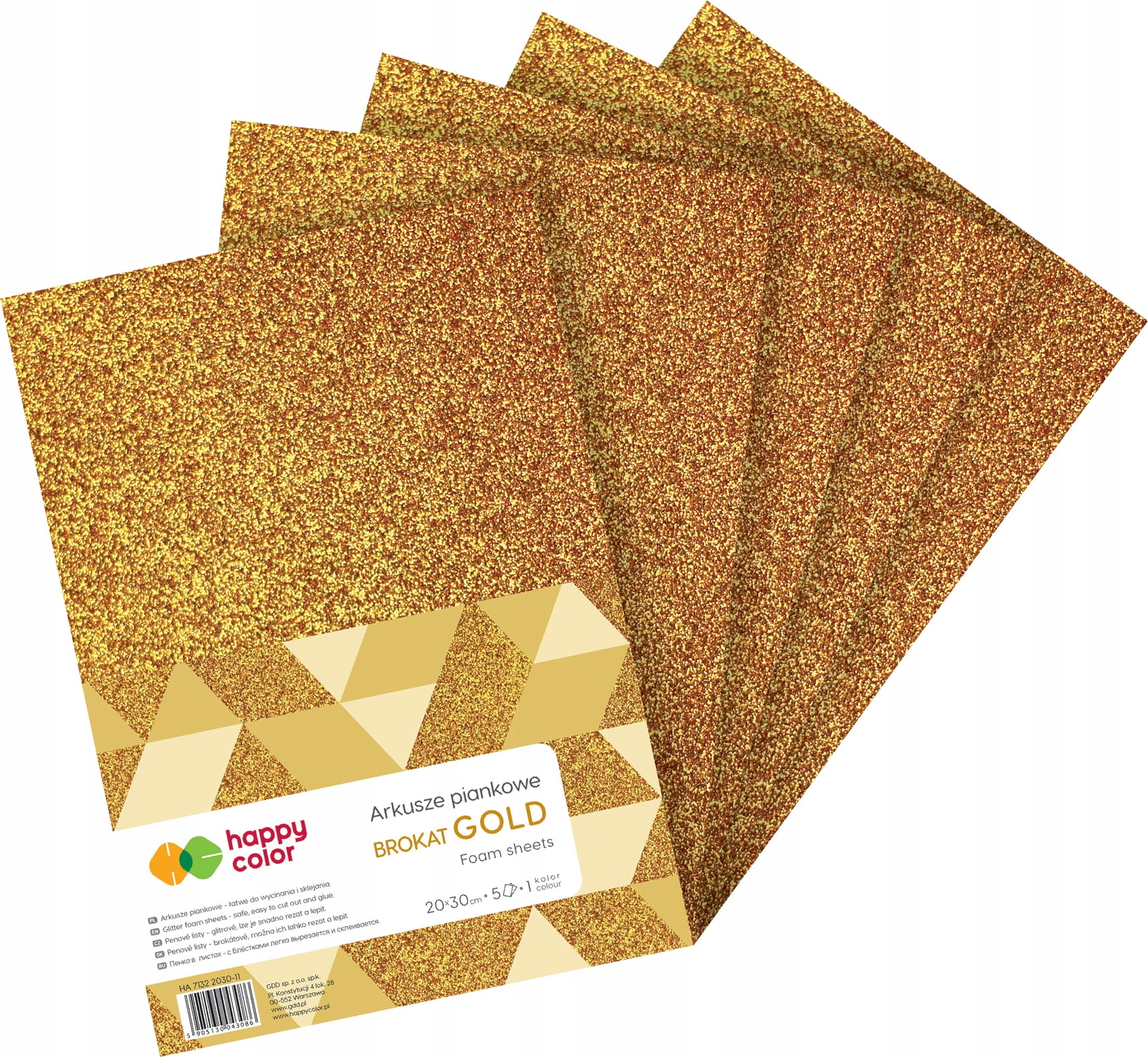 Блестящие листы пенопласта Happy Color формата А4, золото