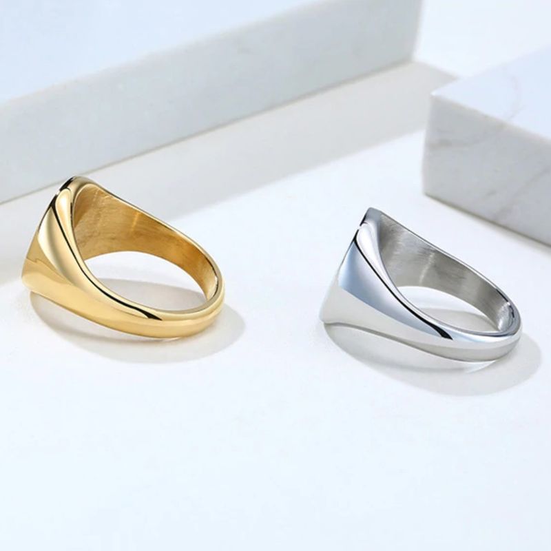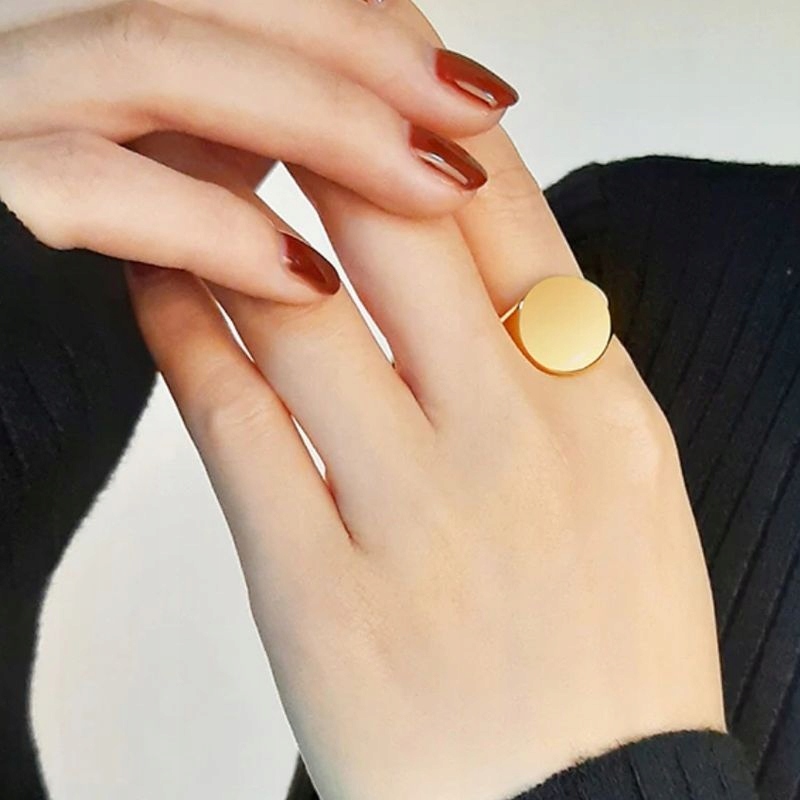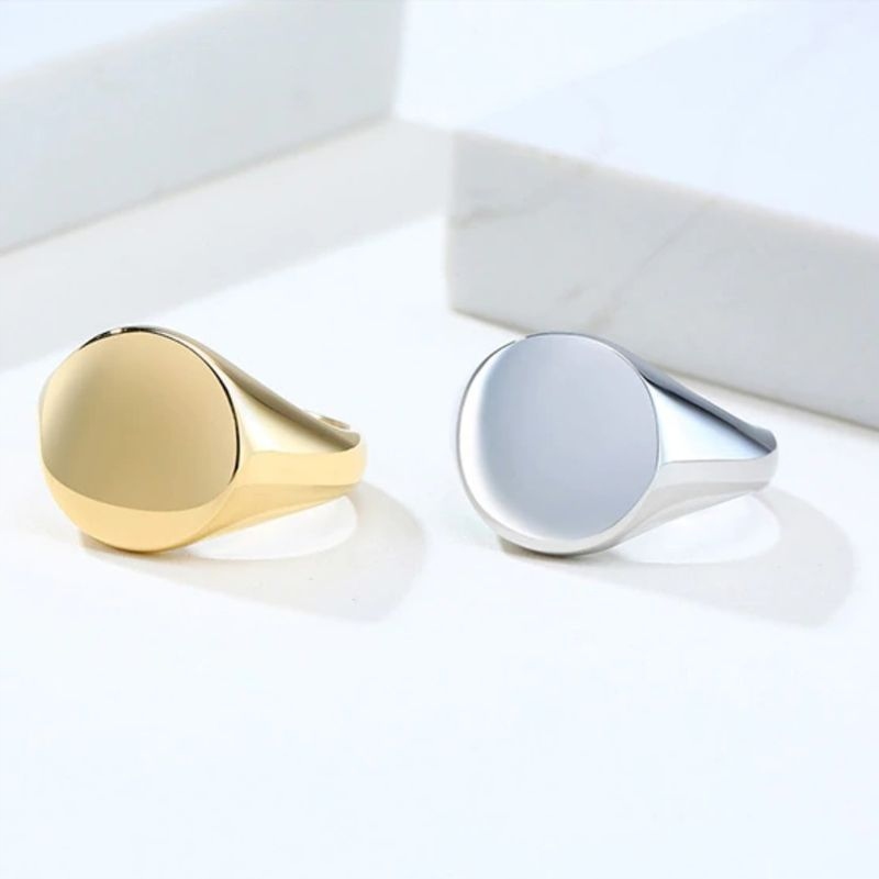 ЗОЛОТОЕ ЭЛЕГАНТНОЕ КРУГЛОЕ КОЛЬЦО-ПЕЧАТКА С НЕРЖАВЕЮЩЕЙ СТАЛИ