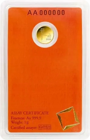 Представляем золотой слиток Valcambi 1 грамм, отчеканенный из золота 999 пробы, произведенного в Швейцарии