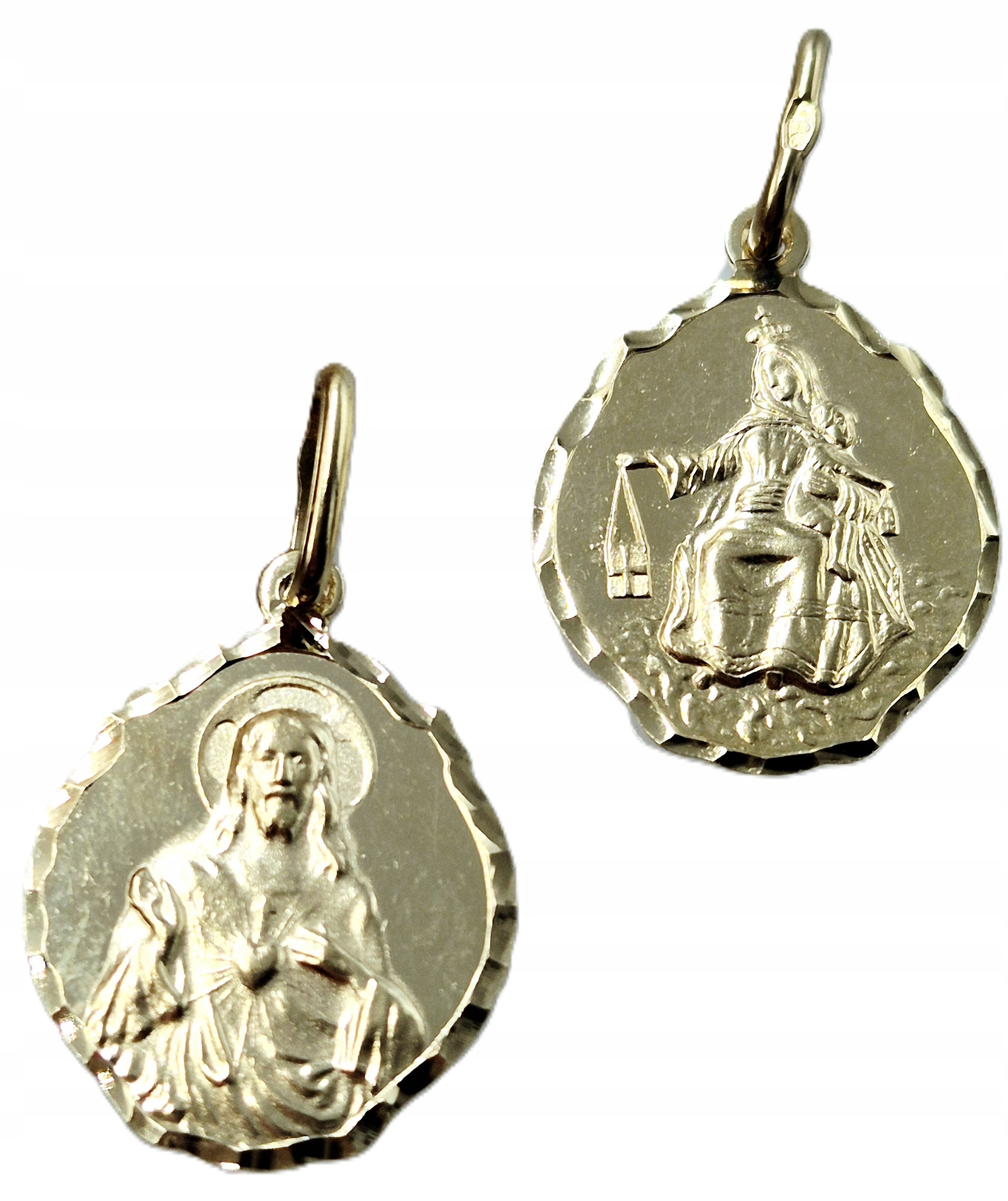 ДВУСТОРОННЯЯ ЗОЛОТАЯ МЕДАЛЬ БОЖЬЕЙ МАТЕРИ ИИСУСА 1.82G 585 14K ДЛИНА 2,6 СМ
