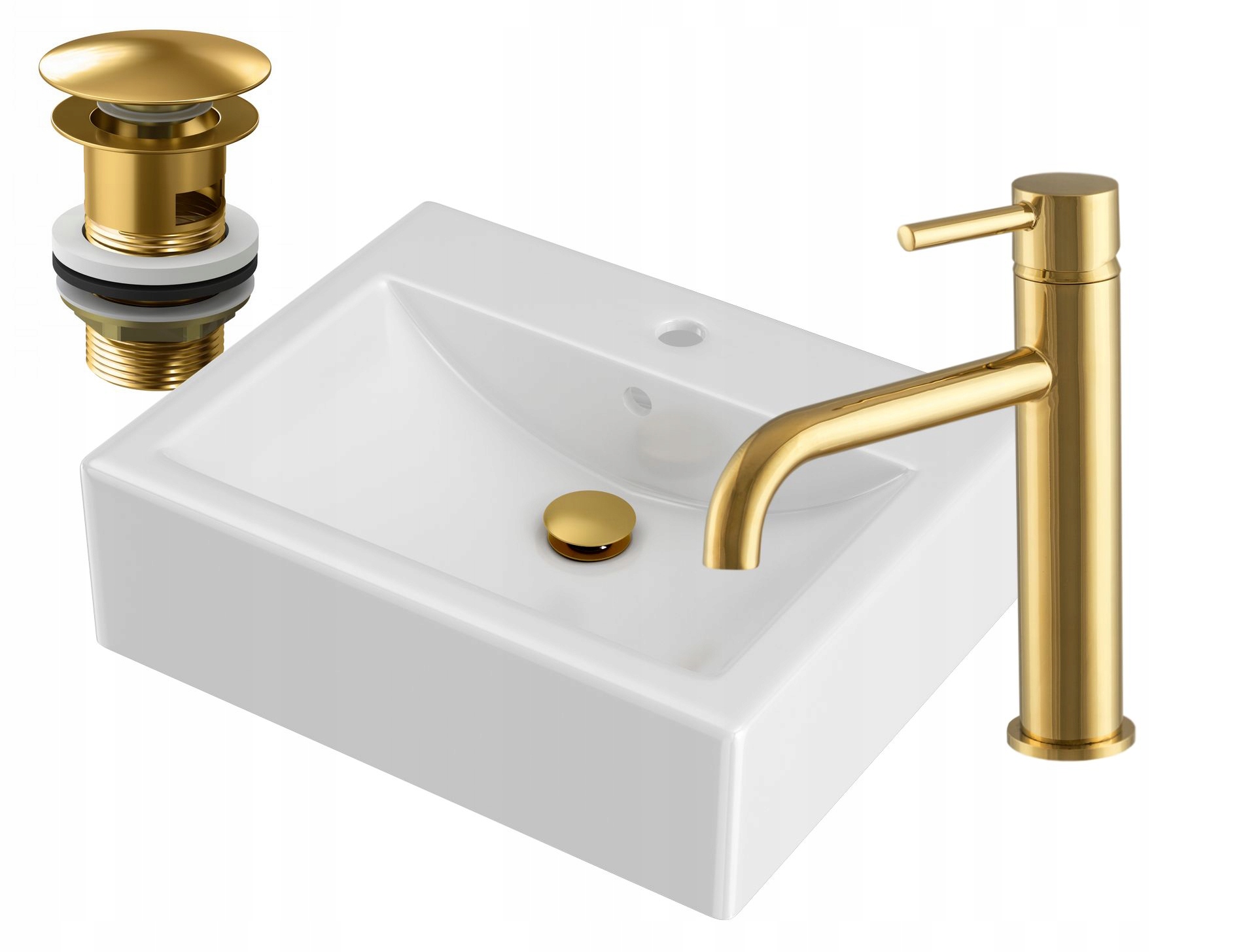 ЗОЛОТИЙ НАБІР ДЛЯ ВАННОЇ РАКОВИНА + БАТАРЕЯ + ВИЛКА