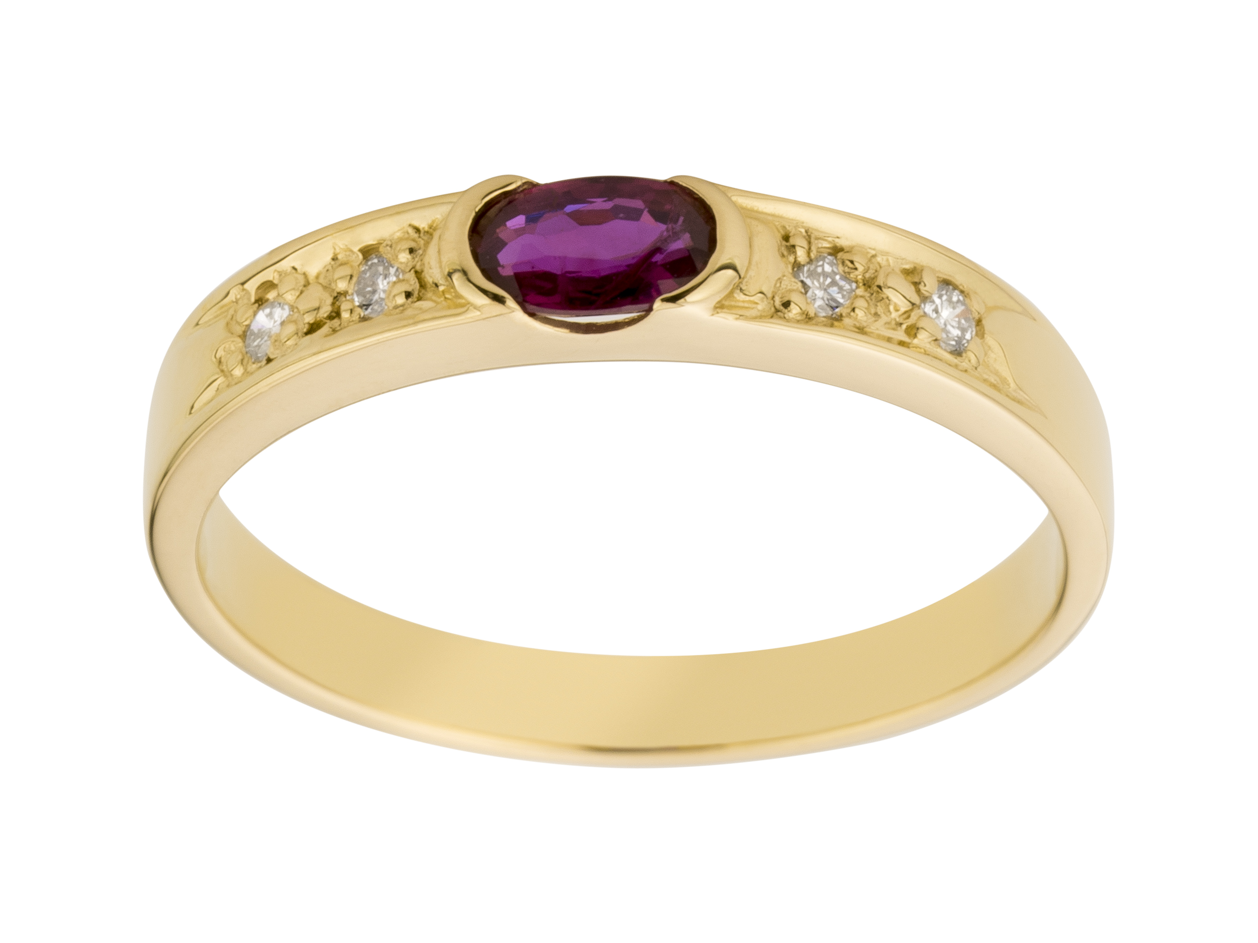 ЗОЛОТО-ЖОВТИЙ ПЕРСТЕНЬ з РУБІНАМИ та 4 БРИЛІАНТАМИ