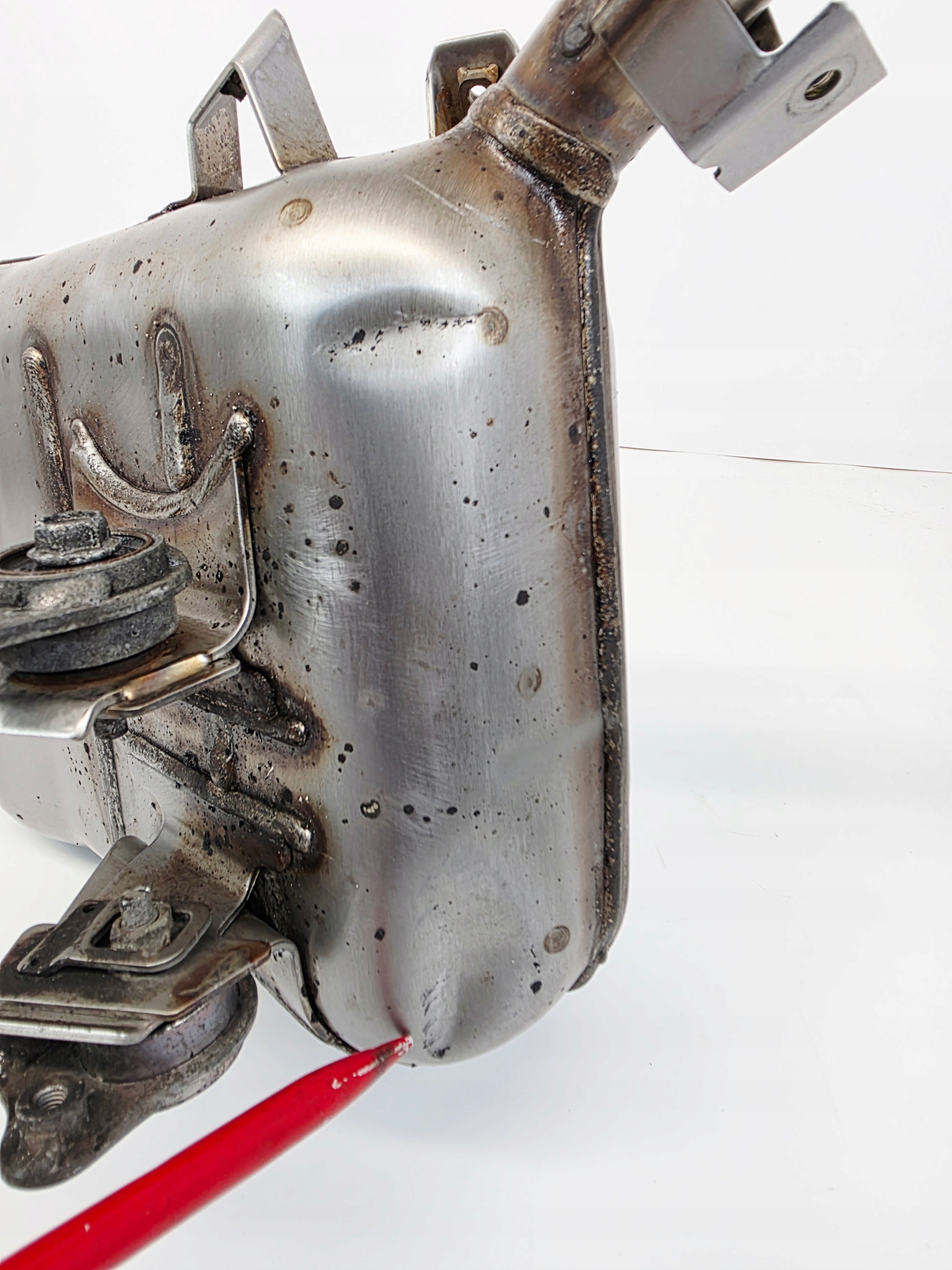 Выпускной коллектор, слегка помятый в задней части выхлопной трубы