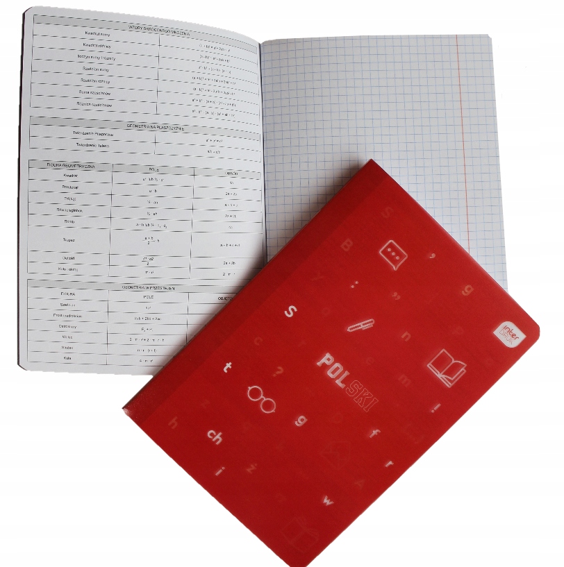 - тетрадь по: польскому, английскому, немецкому языку, математике, физике, химии, биологии, географии, истории и информатике