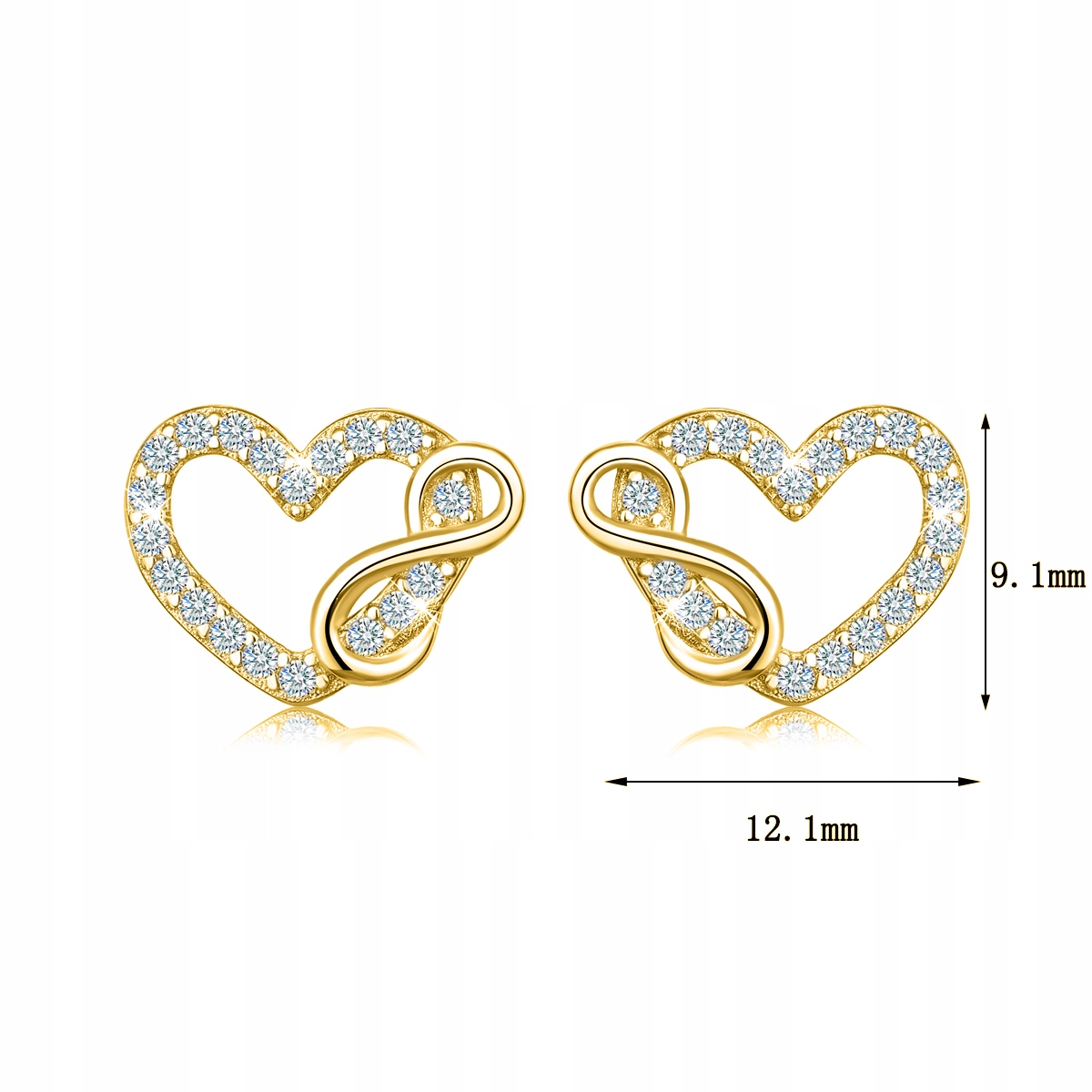 ЗОЛОТЫЕ СЕРЬГИ 925 ПРОБЫ С ГРАВИРОВКОЙ БЕСКОНЕЧНОСТИ СЕРДЦЕ