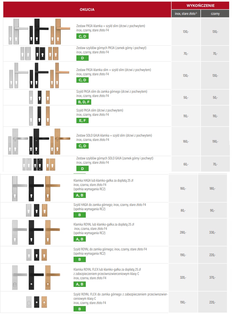 - Двери два цвета: само крыло/набор крыла + рамки субсидий PLN 250,-/750,-
