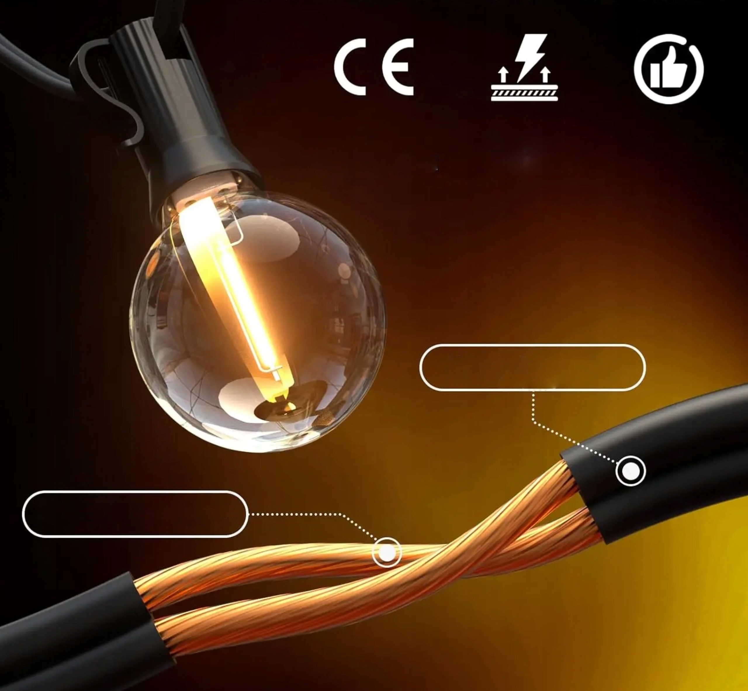 najnowsze żarówki edisona są trwalsze i stand strand, они не ломаются при падении. Его классическая, удлиненная форма и видимые волокна добавляют стиль ретро, идеально подходящие внешние пространства, такие как сады или террасы.