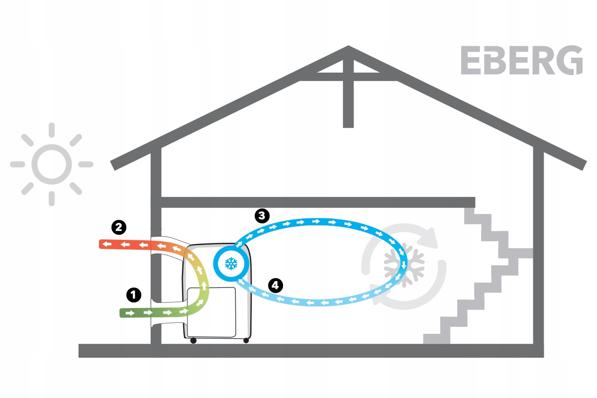 EBERG BOOST благодаря адаптеру и трубе, подающей воздух снаружи, позволяет создать дополнительную циркуляцию воздуха. Работа в 2-х трубной системе позволяет быстрее и эффективнее охлаждать помещение при существенной экономии электроэнергии.