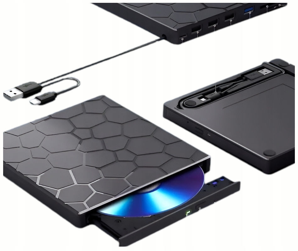Откройте для себя многофункциональное внешнее устройство записи CD/DVD, которое не только записывает и воспроизводит диски, но также предлагает четыре порта USB, порт USB-C и устройство для чтения карт SD/TF, обеспечивая универсальность и удобство в работе. одно устройство. Идеально подходит для работы и развлечений, он обеспечивает быструю передачу данных и расширяет возможности вашего компьютера. Благодаря компактному и портативному дизайну все необходимые функции всегда будут под рукой, где бы вы ни находились.