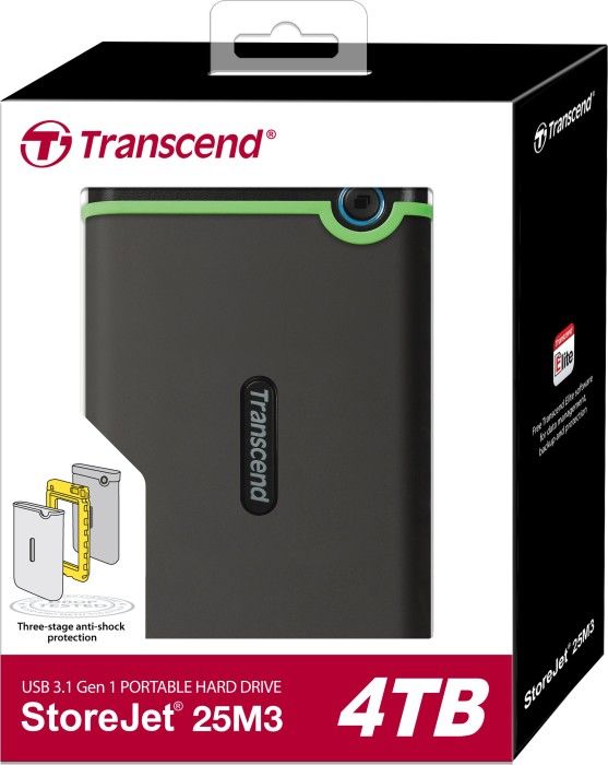 Внешний жесткий диск Storejet 25m3 от Transcend объединяет наибольшее шоковое сопротивление с интерфейсом USB 3.1 Gen 1, что позволяет ультрафлексируемую передачу файла и самый высокий уровень защиты от шока