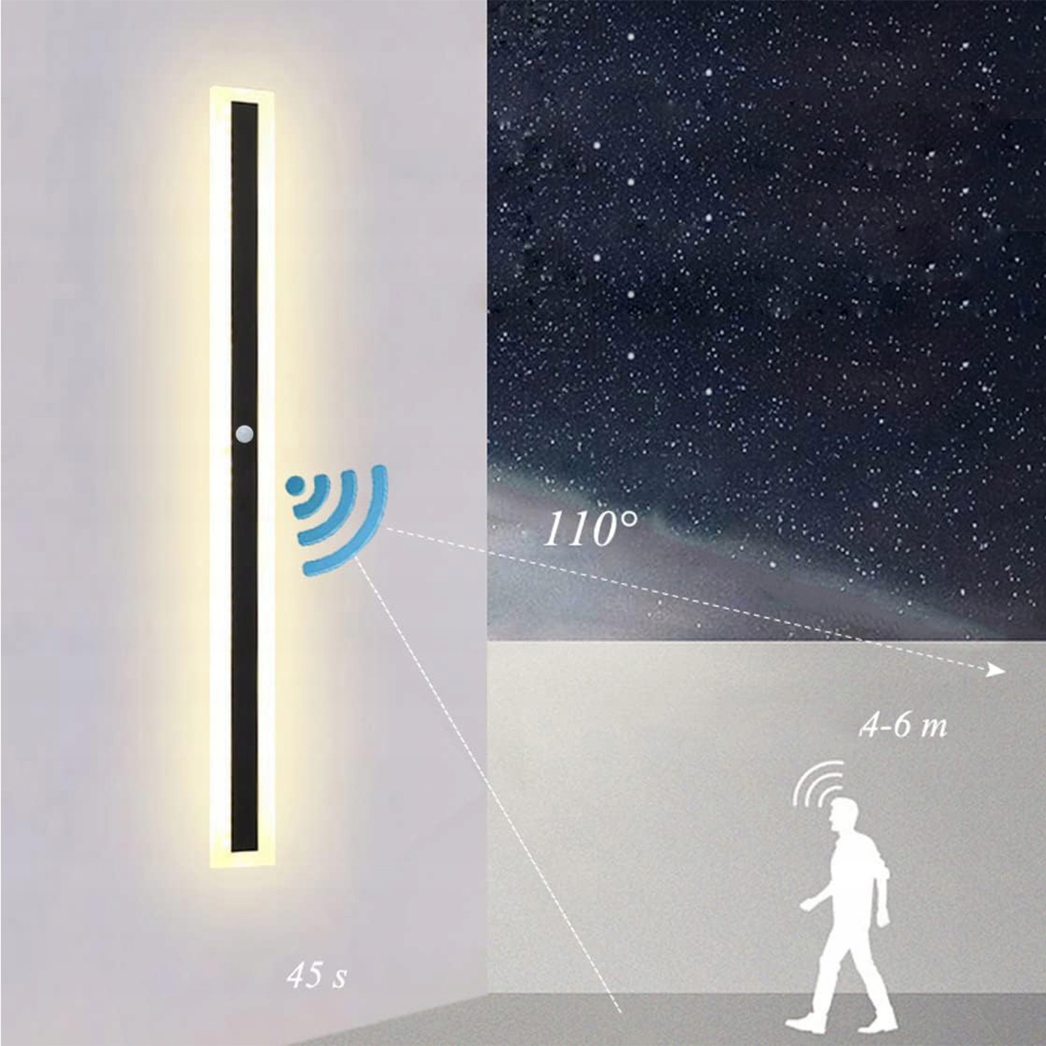 ✔️Интеллектуальная индукция движения человеческого тела:Черный водонепроницаемый настенный светильник оснащен встроенным датчиком движения, который может обнаруживать звуковые волны движения в радиусе 3-5 метров. Люди приходят, чтобы включить свет, и люди приходят, чтобы включить свет. Диапазон облучения: 8-16 м².