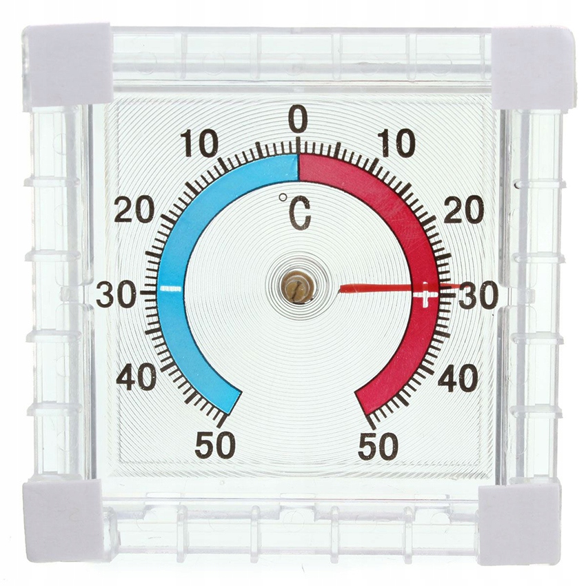 Биметаллический термометр квадратной формы из прозрачного материала. Шкала напечатана непосредственно на пластике. Температуру можно читать в градусах Цельсия. По краям термометра имеются кусочки клейкой ленты, что делает термометр очень устойчивым при прикреплении.