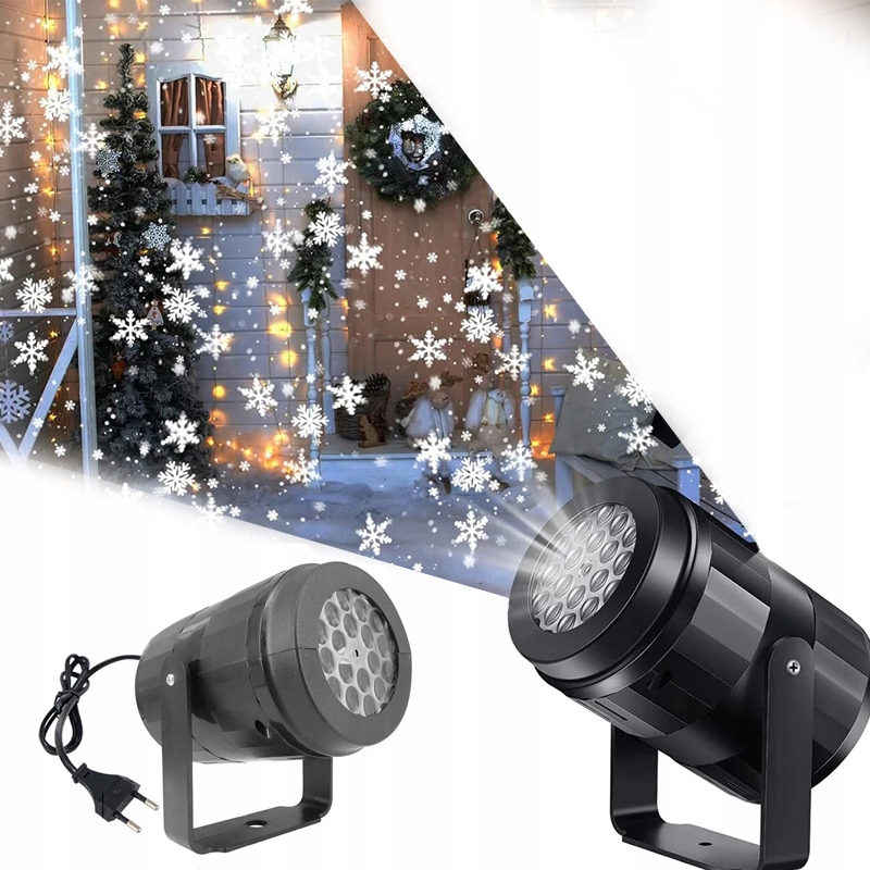Проектор снежных осадков с 360 градусов. Рождественские снежинки: Проектор рождественских снежинок имеет роторный шкаф для картины с 360 градусами, что может свободно регулировать угол проекции. Вращающийся проектор снежинок на Хэллоуин можно повесить на стену или положить на пол, что безопасно и удобно.