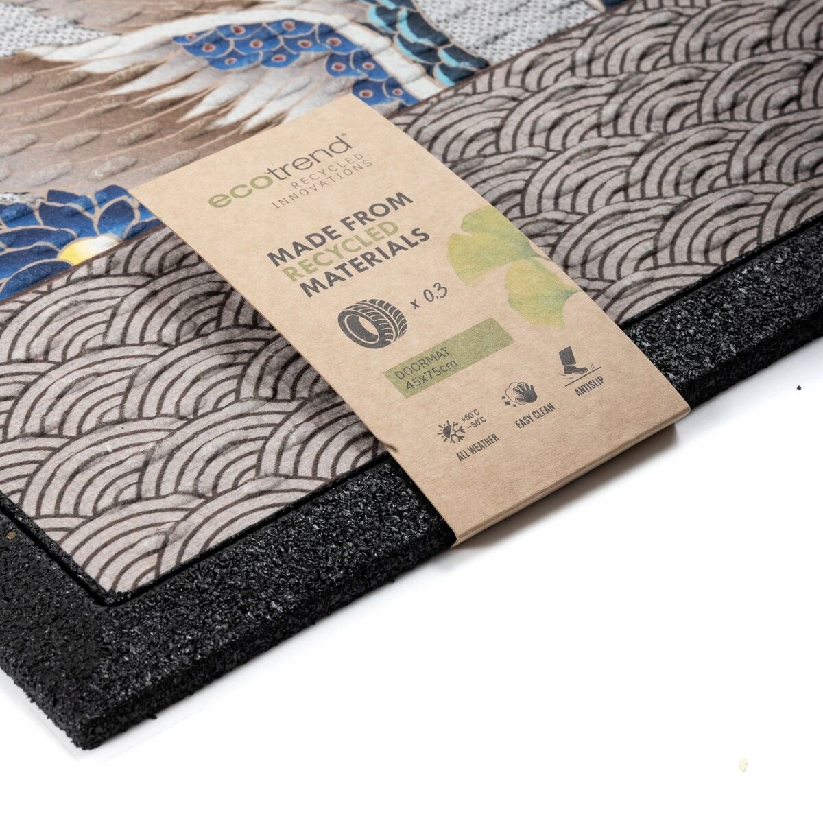 Он был изготовлен с использованием таких материалов, как PES и переработанная резина, и обладает противоскользящими свойствами.