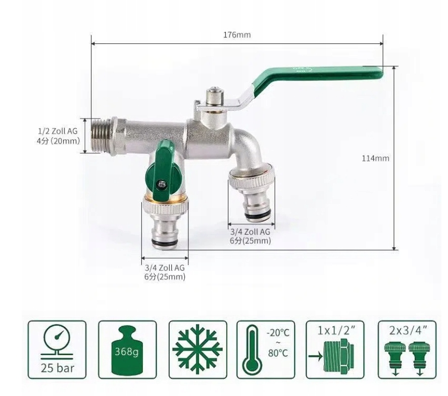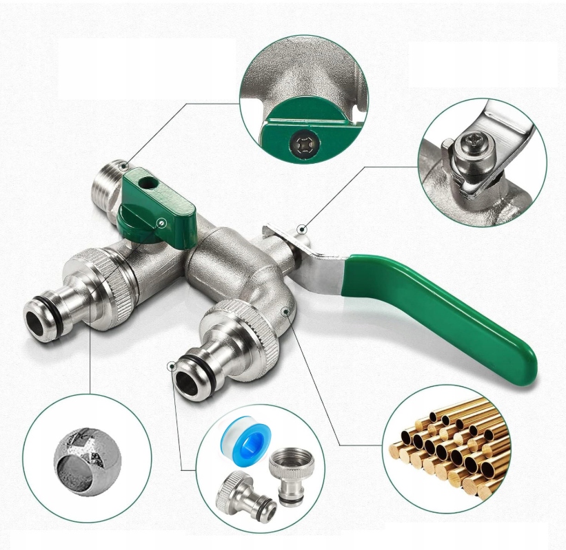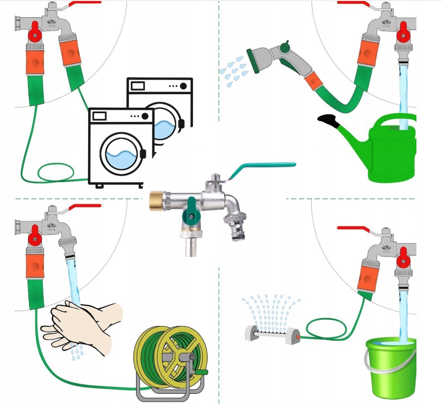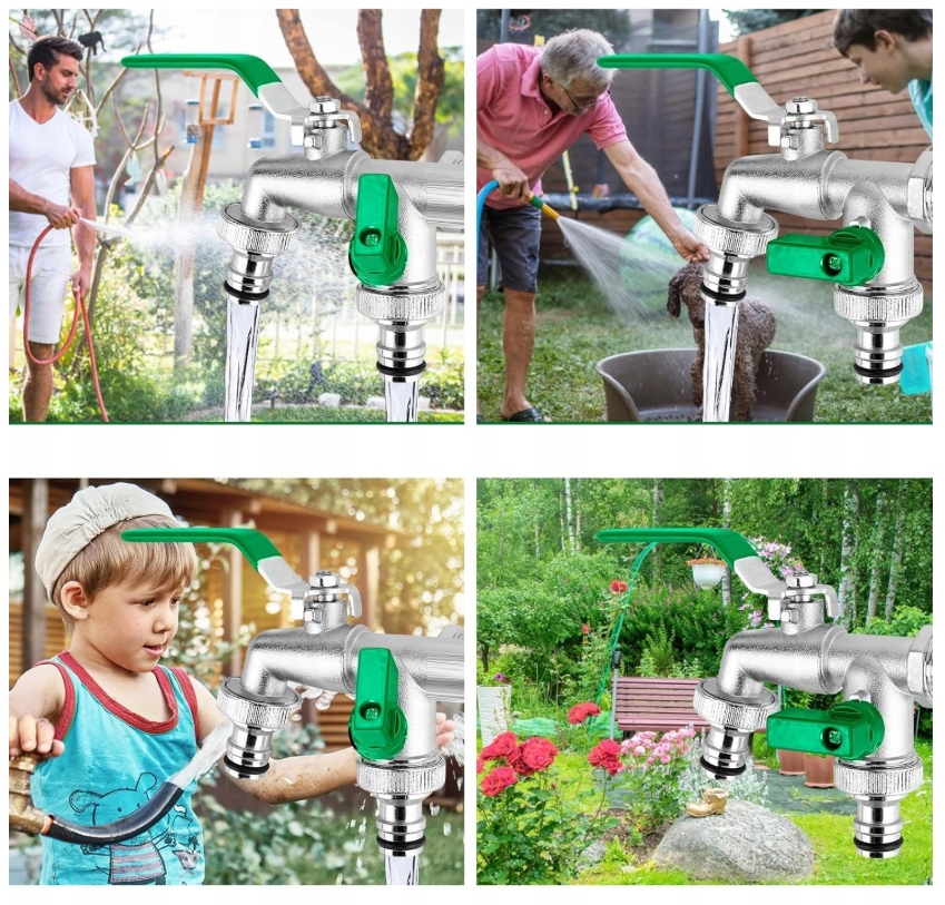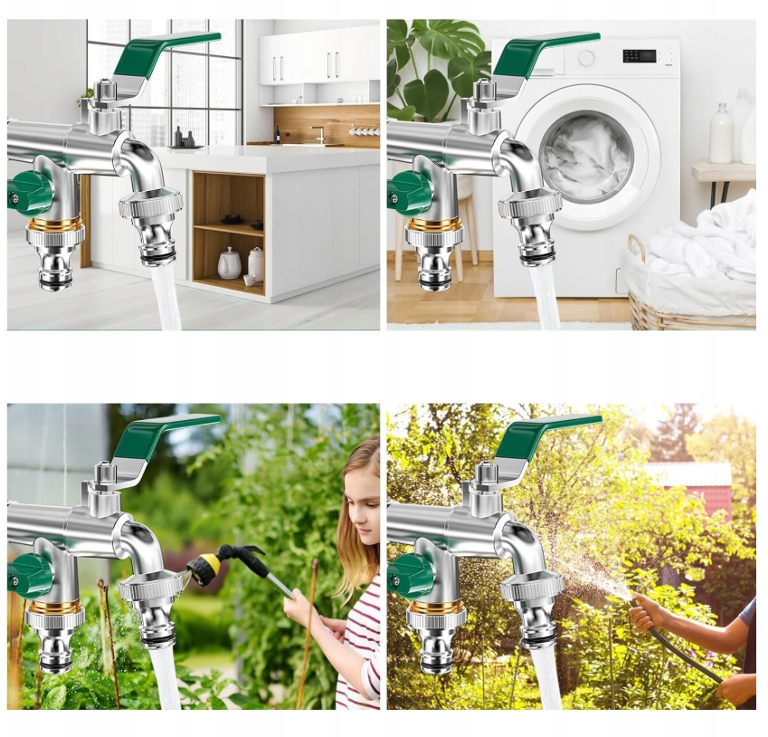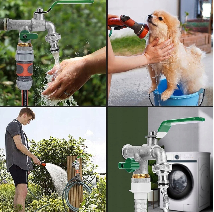 【Применение】Высококачественный смеситель с двойным выпуском, подходящий для сада, промышленности и дома, орошения, стиральной машины, автомойки, садового шланга, лейки, дождевой бочки и т. д. Может использоваться местно. Внешняя часть нашего смесителя не только обеспечивает безопасность на открытом воздухе! Он также идеально подходит для подключения стиральных машин или чайников.