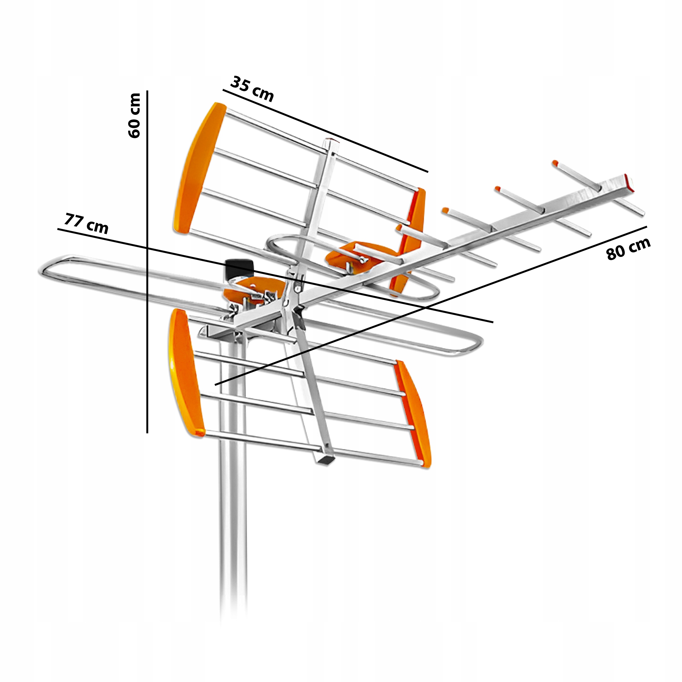 Антенна для приема эфирного телевидения во всех стандартах: DVB-T, DVB-T2, MUX-1, MUX-2, MUX-3, MUX-4 , MUX-8. Устройство работает как для V, так и для Hполяризации. Антенна обладает высокой мощностью, благодаря чему мы получаем изображение без помех и в высочайшем качестве. Он изготовлен из прочных и устойчивых к атмосферным воздействиям материалов, что делает его идеальным для любых погодных условий.