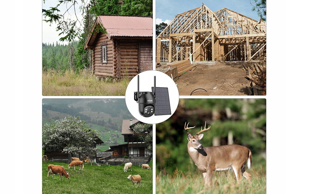 Камеру наблюдения за солнечной батареей можно поворачивать на 355° по горизонтали и на 90° по вертикали с помощью дистанционного управления камерой через приложение, вы можете получить все углы вокруг камеры. Наружная камера наблюдения с солнечной батареей имеет широкий угол обзора 90° и функцию 4-кратного цифрового масштабирования. Вы можете увеличить видеоэкран, чтобы увидеть более подробную информацию.