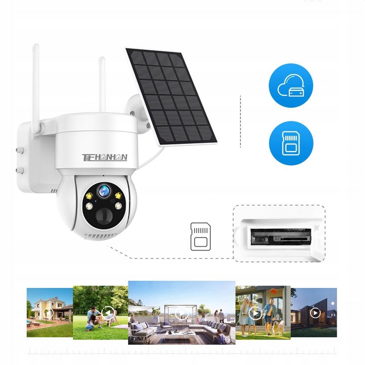 TIEHANHAN IS-01 Solar records in 4MPx resolution. Thanks to the built-in battery and the possibility of charging from the solar panel included in the set, no need to connect it to the power supply! Moreover, it has all the functions that a modern camera should have:
