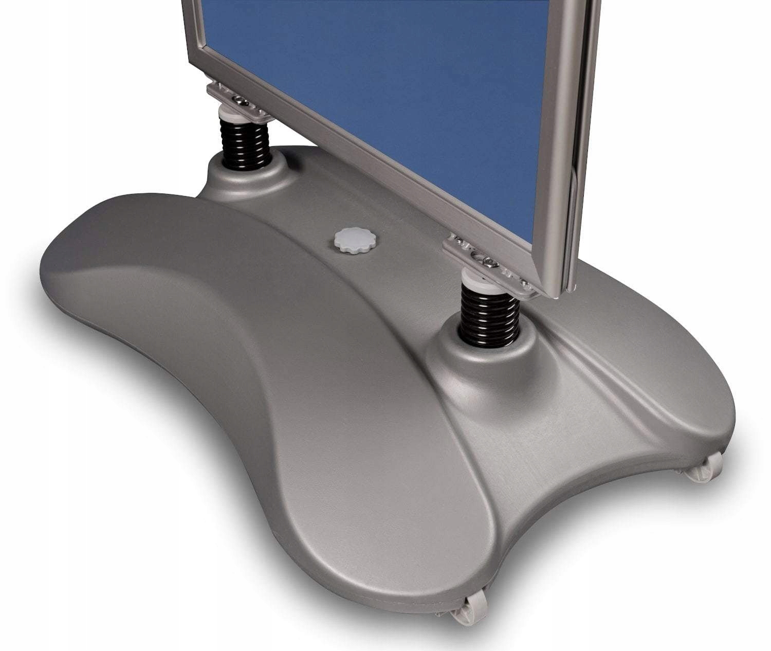 Безусловно, самый популярный шляп для внешнего использования. Рама встроена на пружинах, благодаря которой шляпа адаптируется к ветровой силе. Основой является резервуар для воды. После заполнения его шляпа становится очень тяжелой, и его передача возможна благодаря ручке и кругам, установленным в основании. Плакат вырезан по принципу каркаса OWZ. Толстая крышка, покрывающая плакат, имеет ультрафиолетовый фильтр, который защищает распечатку от потери цвета под воздействием солнечного света. Профиль кадры: 32 мм.