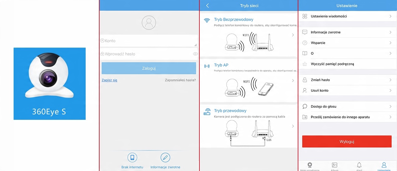 Установка камеры занимает всего несколько минут. Просто скачайте бесплатное приложение 360Eye S, доступное как для iOS, так и для Android. Все приложение написано на польском (Android) или английском (iOS), что значительно упрощает его использование.