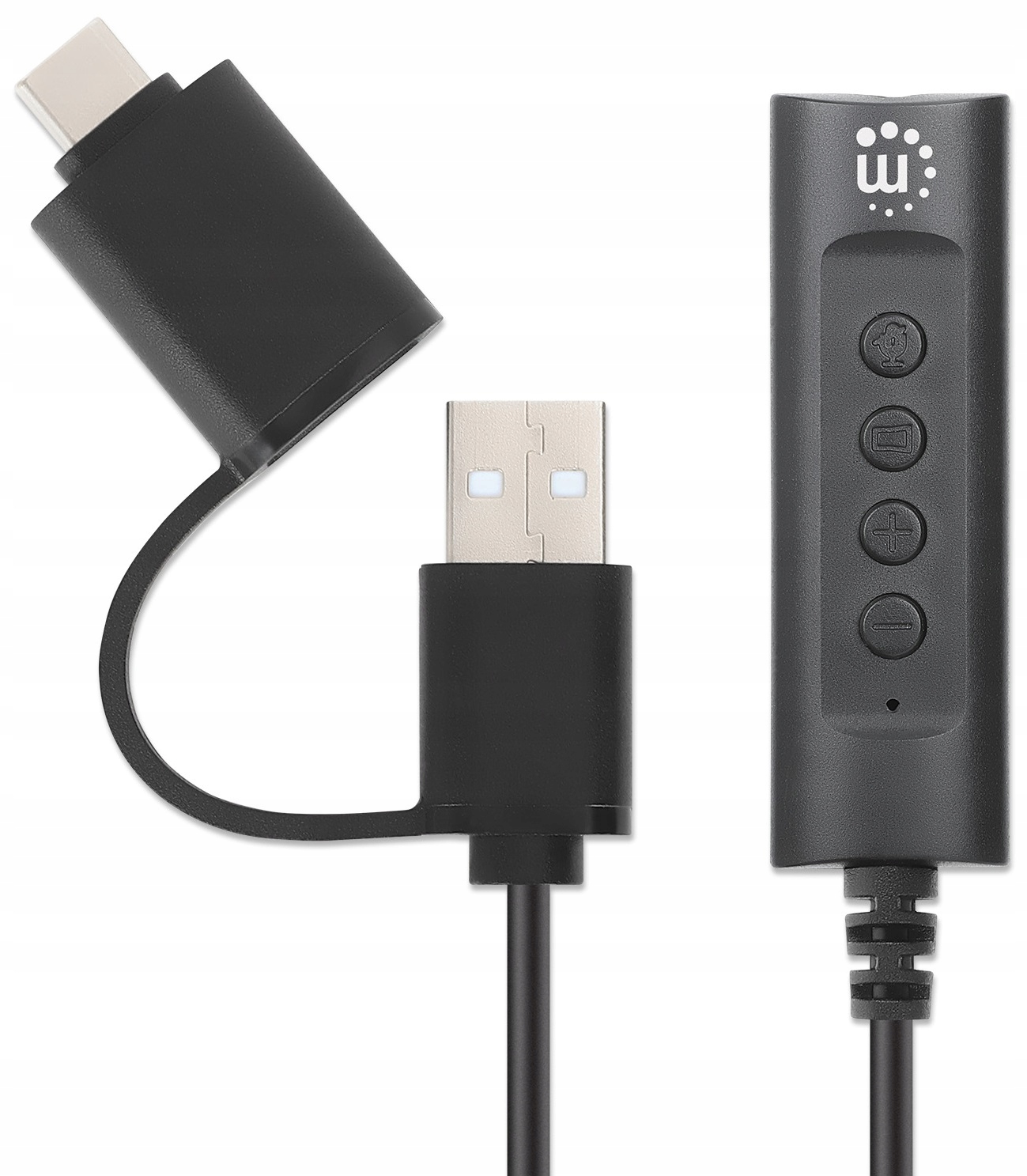 Адаптер для наушников Manhattan Aux, звуковая карта USB-C / USB-A на Audio Stereo 3,5 мм TRR, CTIA с кнопками управления звуком < / H1>
