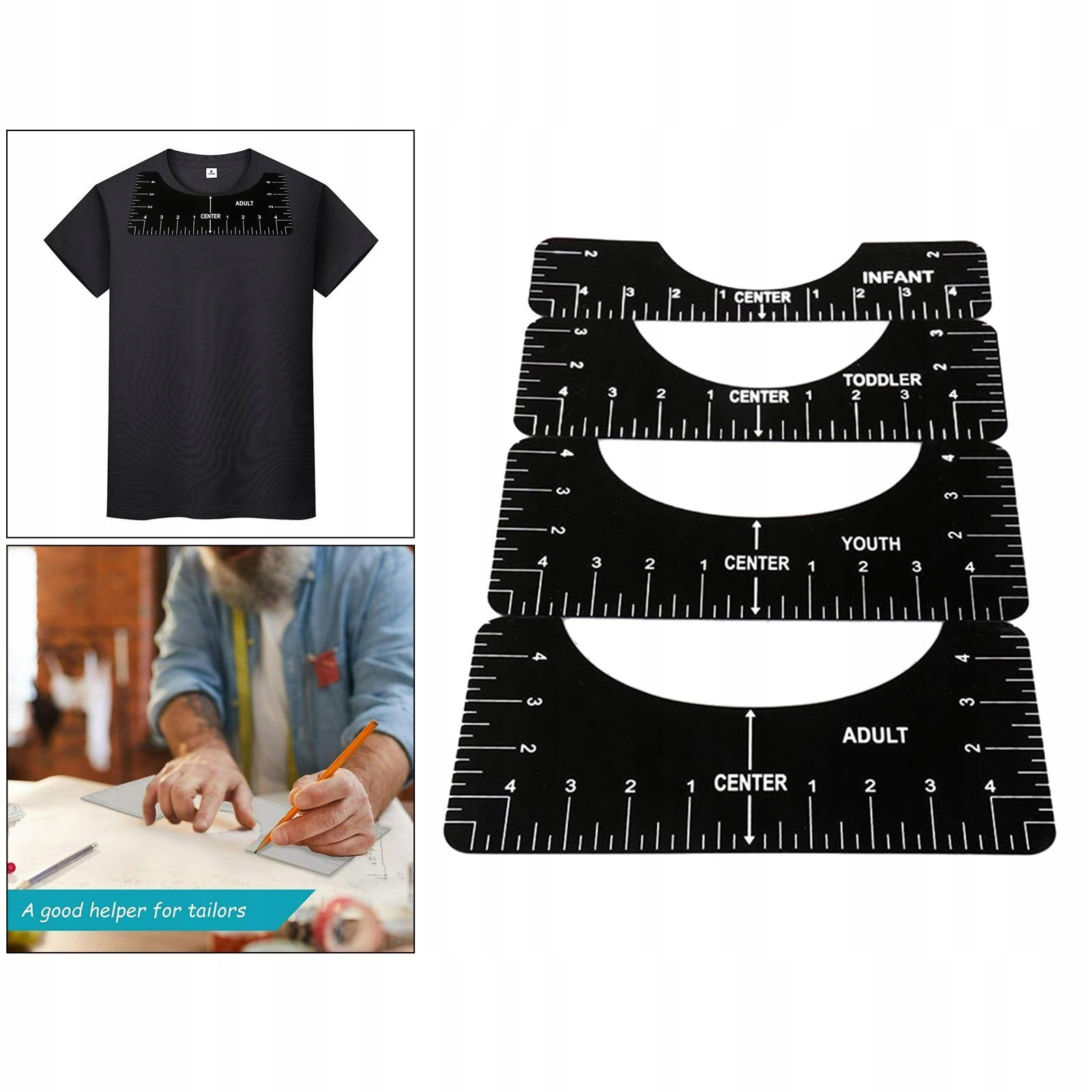 4x инструмент для выравнивания направляющих линеек для футболок, инструмент для калибровки резки ткани, черный
