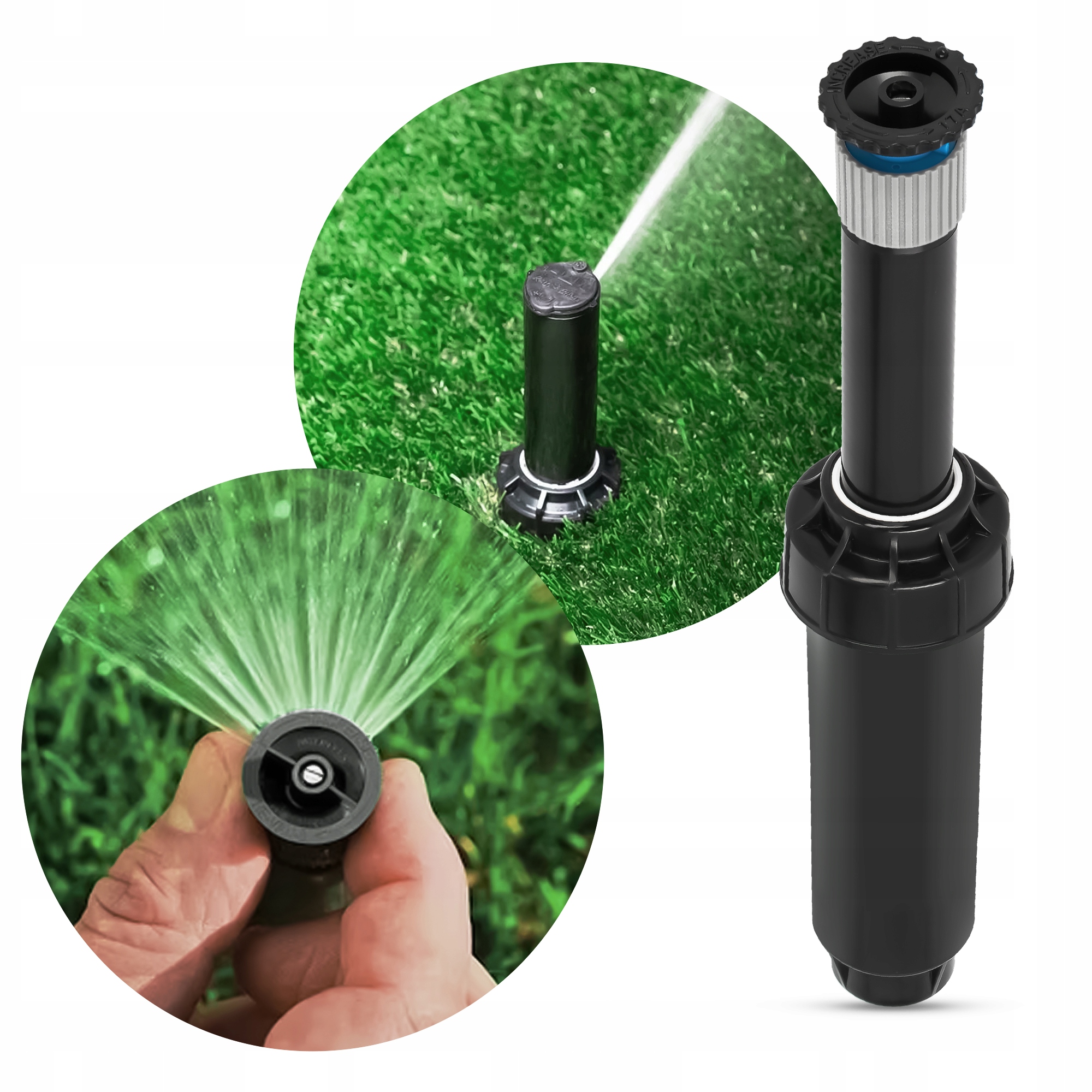 Выдвижной ороситель с регулируемой насадкой — комплект, обеспечивающий полноценный полив зеленых насаждений, клумб и кустарников. Разбрызгиватель выдвигается под давлением, а в состоянии покоя прячется в землю и невидим. Благодаря этому он гарантирует эстетичный вид зеленых зон, на которых установлен.