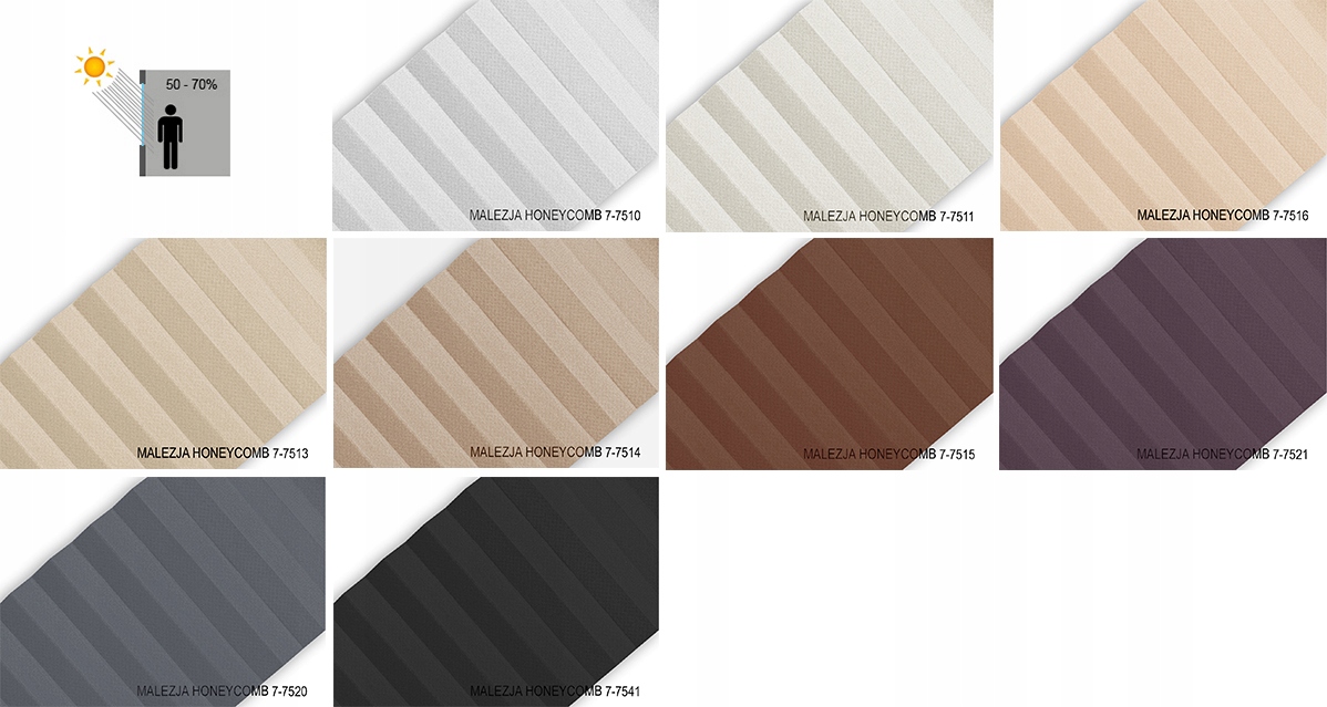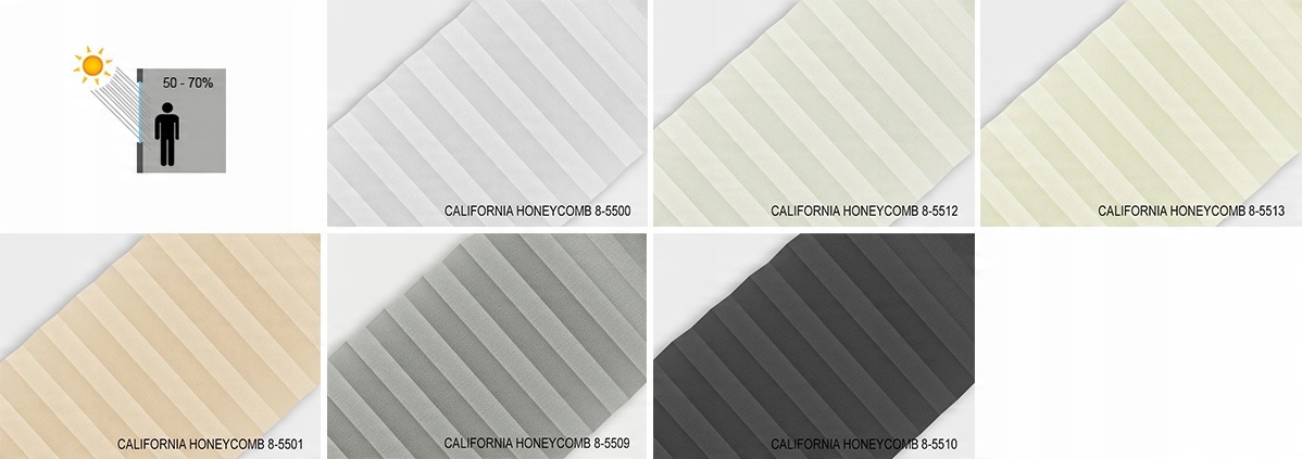 OCTAWIA, MALAYSIA, CALIFORNIA, DAISY, ZOJA HONEYCOMB - материал, комбинированный из двух складок. Для ткани «соты» характерны более мелкие складки в складках. В разрезе он напоминает соты. Кроме того, соты повышают эстетику интерьера, позволяя разместить внутри ткани струнные механизмы и направляющие.