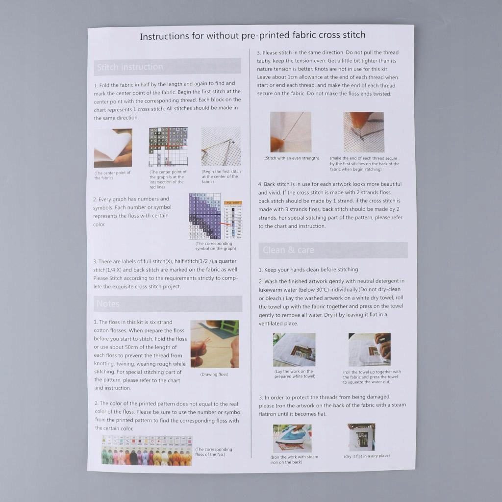 Упаковка содержит: ткань вышивки, предварительно сортируемые потоки, 2 штуки, инструкции и рисунки