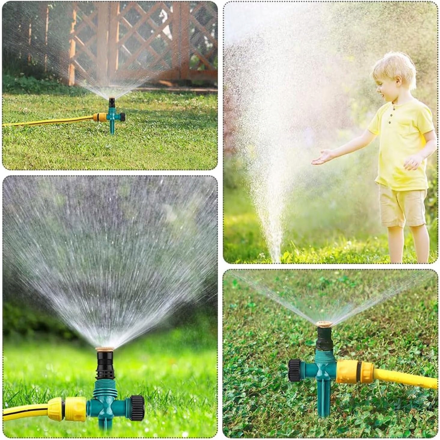 - Различные возможности применения: разбрызгиватель широко используется для орошения газонов, садов и сельского хозяйства, летом его также можно использовать в качестве детского разбрызгивателя для создания прохладной зоны опрыскивания.