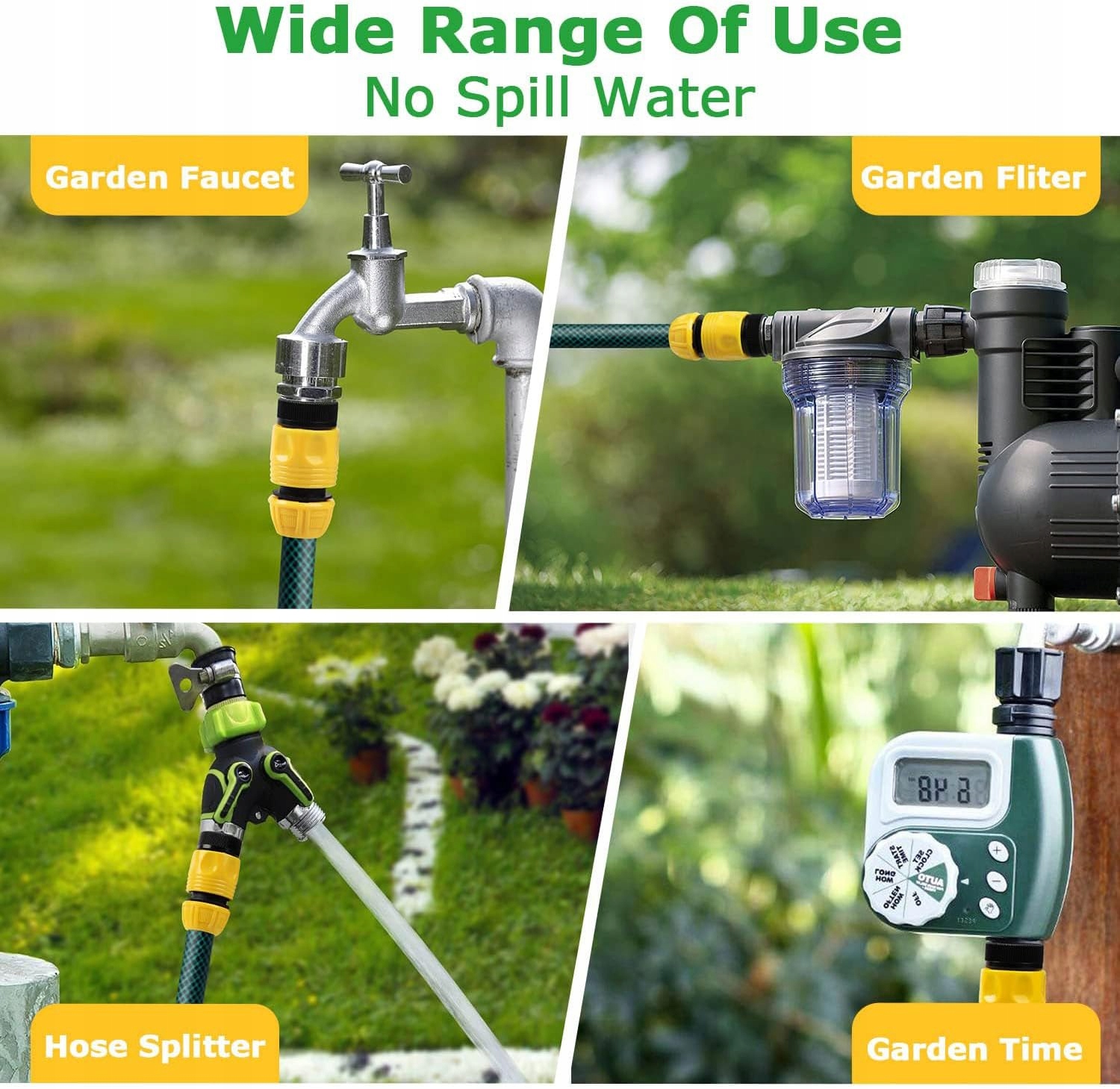 - 3-ступенчатая регулировка и экономия воды: также используется технология водосбережения, 90 ° / 180 ° / 360 °, регулируемая по вашему желанию, что обеспечивает равномерный слой воды без разбрызгивания и мелкие капли воды для защиты ваших цветов и растений от повреждений.