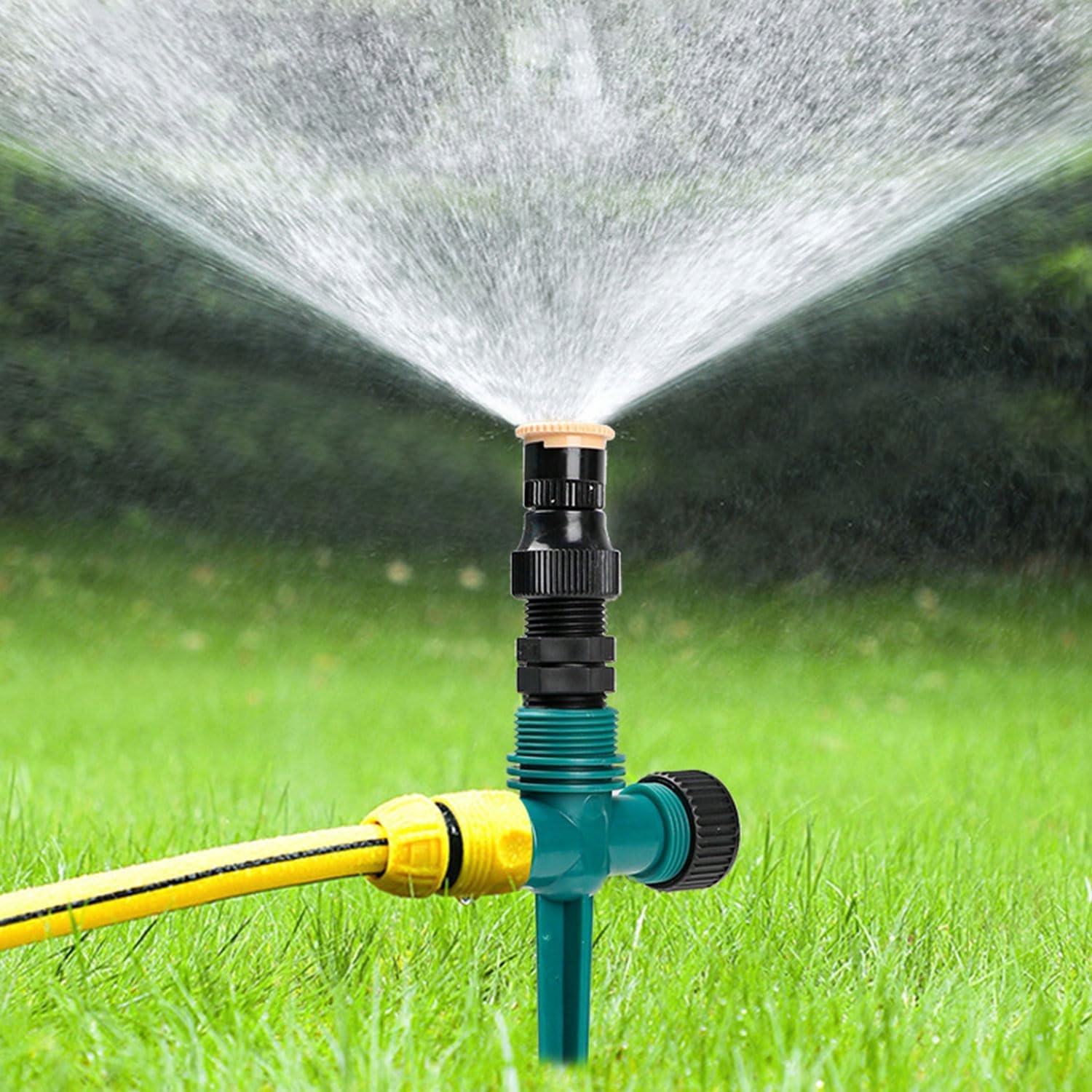 - Автоматическая система орошения с вращением на 360°: можно установить любой угол, спринклерная система распределяет полив по каждому уголку сада. (диаметр распыления зависит от давления воды, чем выше давление воды, тем больше площадь орошения).