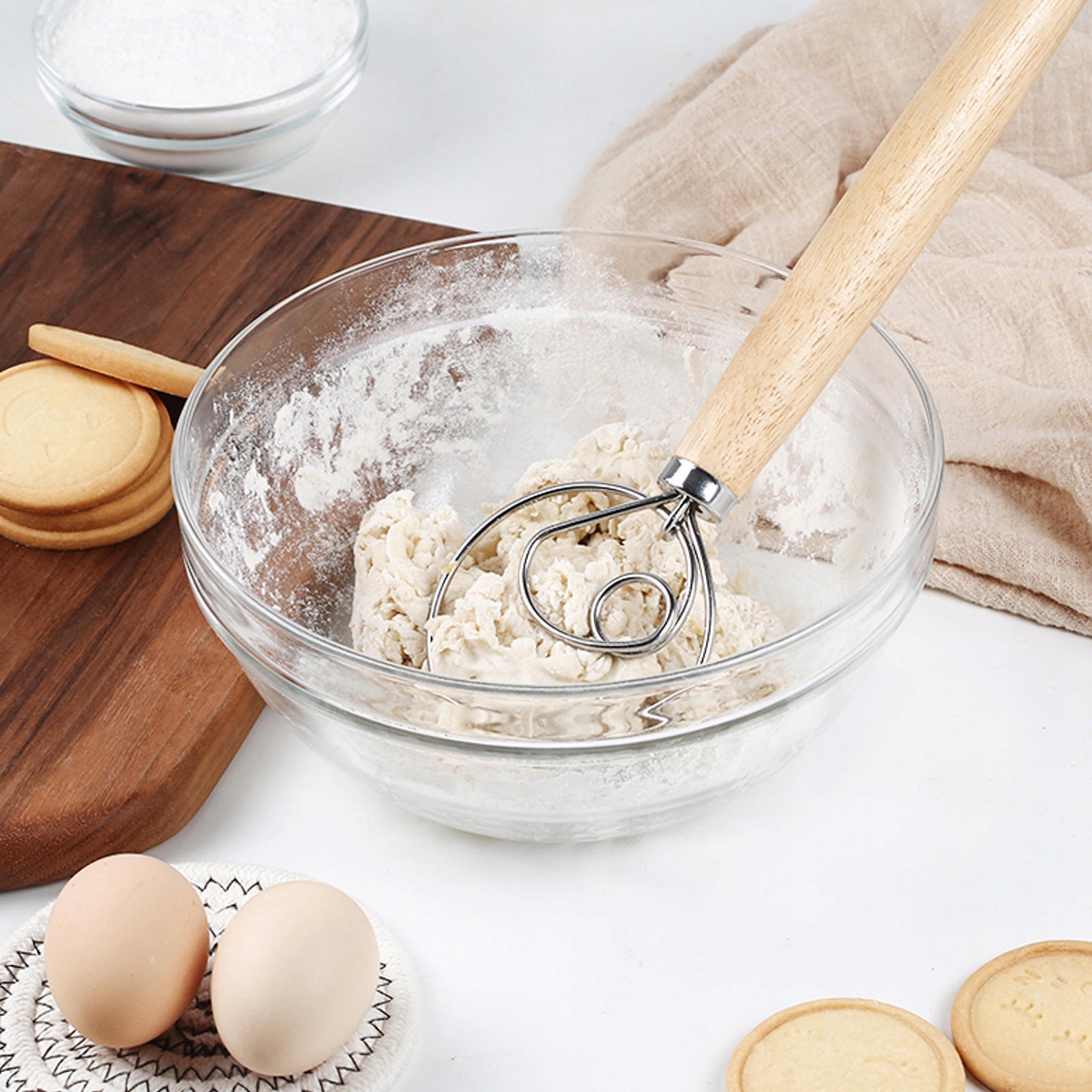 ✅Спиральный миксер с дубовой ручкой, можно использовать как взбиватель яиц, палочку для муки, кухонные принадлежности, инструменты для выпечки.