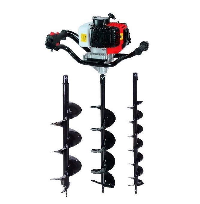 Бензиновая буровая установка представляет собой инструмент с буром, приводимый в движение двухтактным двигателем. Рычаг газа используется для управления