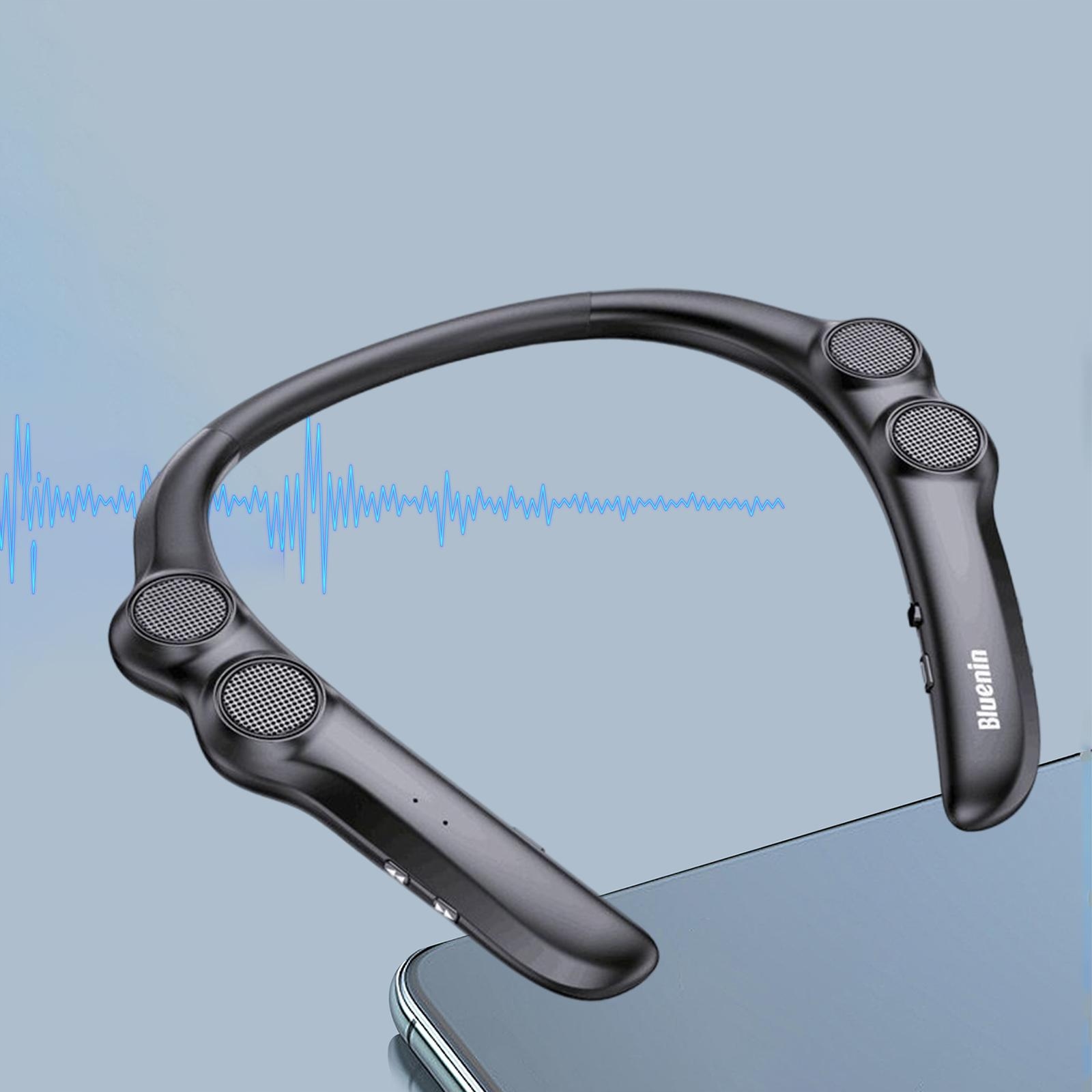 Ношение динамика: эргономичная повязка на шею сделана из гибкого силикона, легкого и удобного для ношения, этот динамик с повязкой на шею позволяет наслаждаться музыкой и оставаться в контакте с окружающим миром >