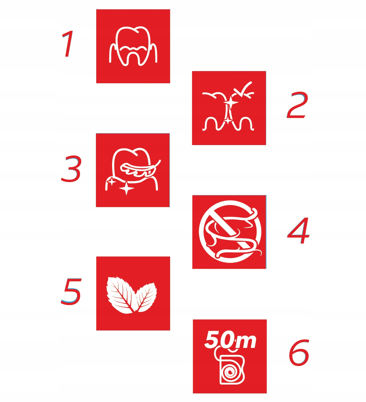 Помогает бороться с бактериями там, куда не может попасть зубная щетка. Эффективно удаляет зубной налет в межзубных промежутках, а также на линии десен. Благодаря этому это помогает снижать риск заболеваний десен и кариеса.