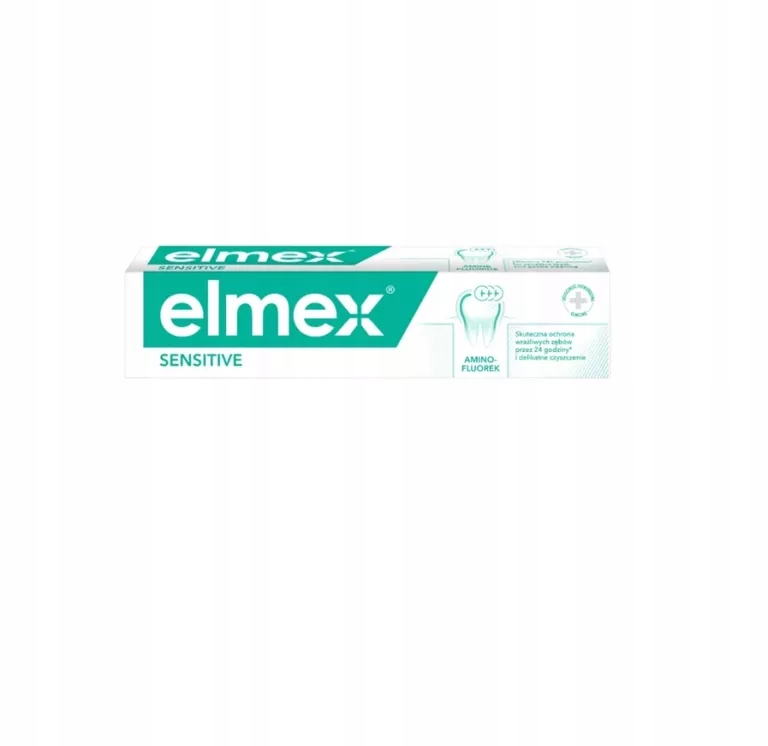Elmex Sensitive — зубная паста, созданная для людей с чувствительными зубами. Содержит фторид амина, который помогает защитить открытые шейки зубов, укрепляет эмаль и снижает гиперчувствительность к холоду, теплу и кислым раздражителям.