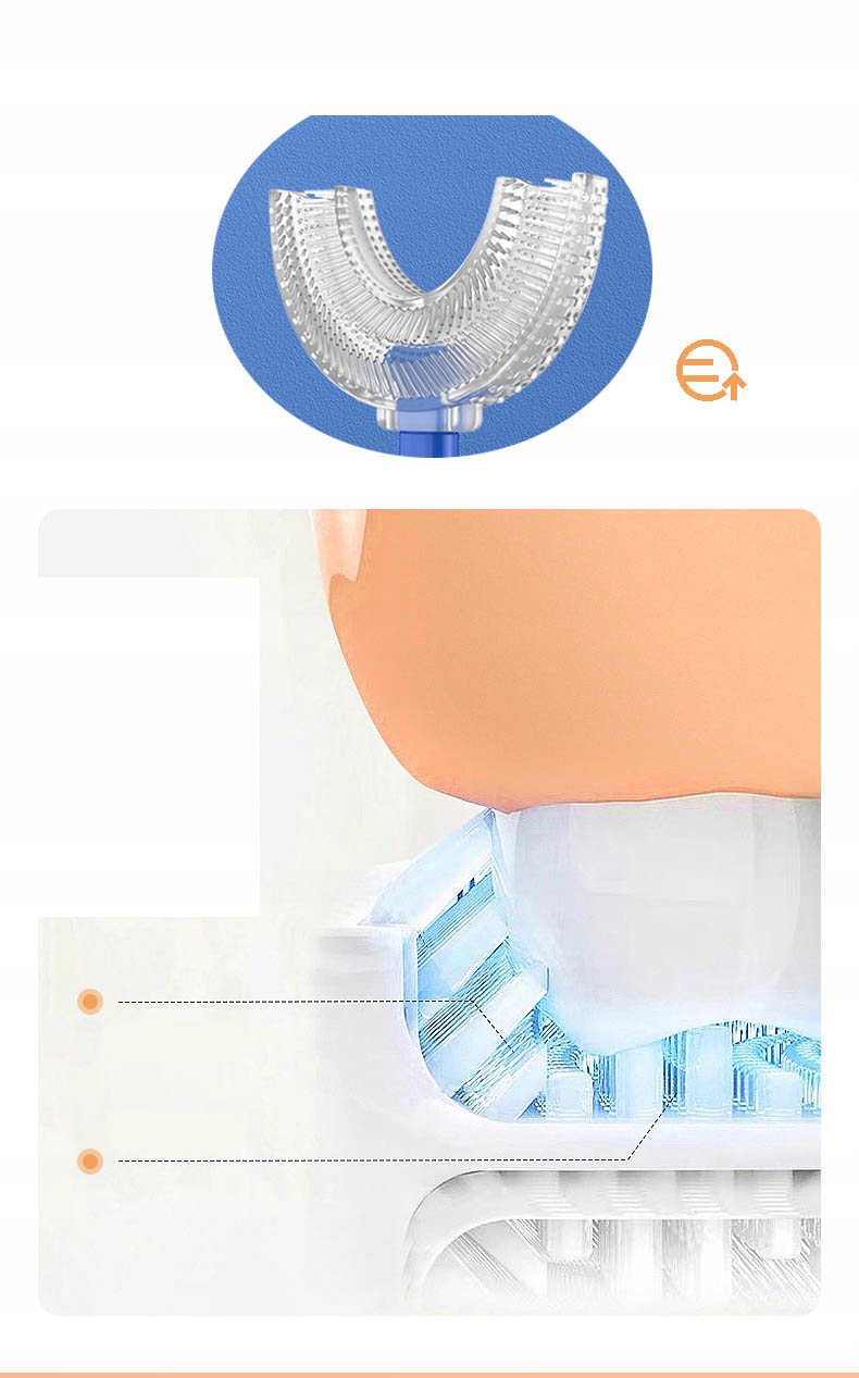 Благодаря технологиям U-образная зубная щетка очищает все зубы одновременно.