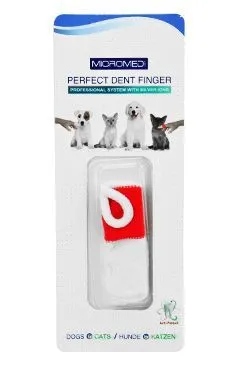 Кошачья зубная щетка = красно-белое покрытие пальца