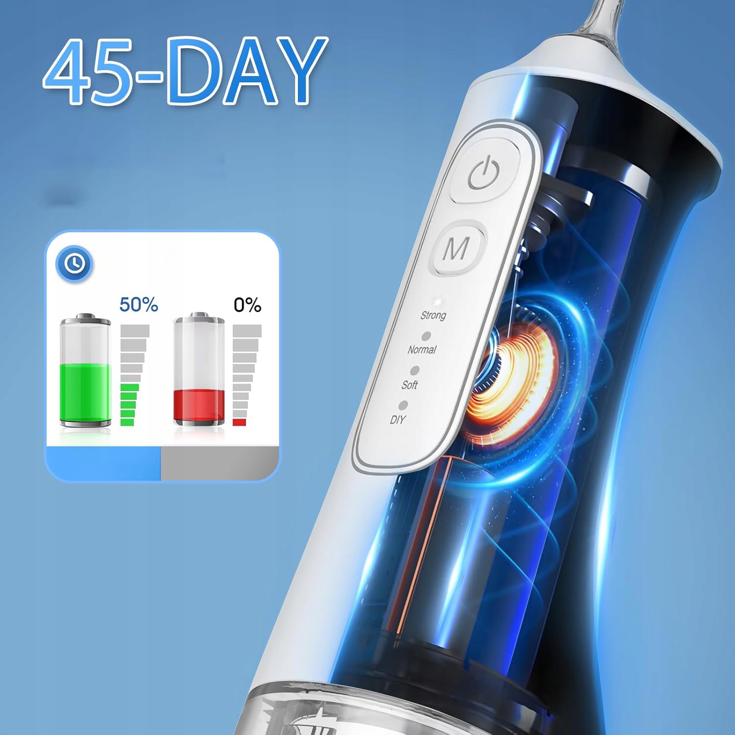 💦 Вы можете персонализировать свою помощь, регулируя давление беспроводной воды Flosser в соответствии с вашими потребностями благодаря DIY. Когда вы чувствуете, что давление воды достигло удобной или подходящей прочности для вас, замедлите кнопку, чтобы завершить настройку давления воды.