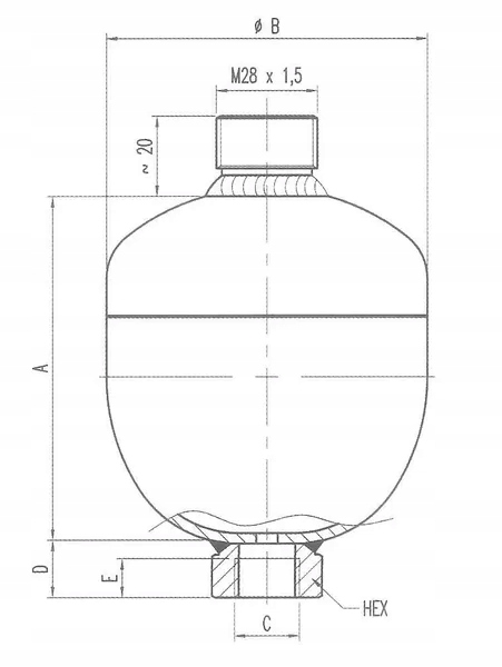 Аккумулятор мембранный сварной типа ELM Parker, 0,16 л, 30 бар