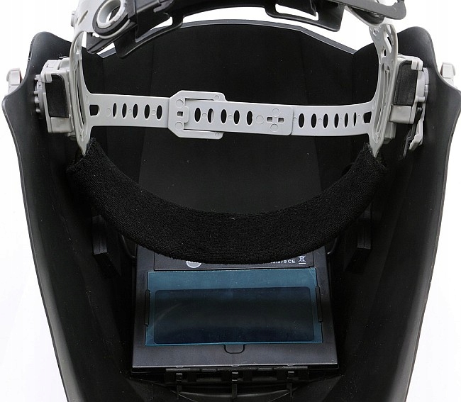 Сварочная маска с автозатемняющимся фильтром. Оптический класс 1/2/1/3. Высококачественный фильтр, оснащенный 4 датчиками дуги, обеспечивает поле зрения 98*43 мм, темное состояние DIN 9-13, светлое состояние DIN4, время отклика 1/25000 с, время просветления 0,1-1,0 с и время затемнения. 0,3-0,8 мс. Кроме того, фильтр обеспечивает защиту от УФ/ИК-лучей на уровне DIN16. Визор имеет плавную регулировку чувствительности и затемнения, а также плавную регулировку скорости затемнения. Он питается от солнечной батареи и двух батареек CR2450 напряжением 3 В и имеет функцию автоматического включения/выключения. Козырек также выполняет защитную функцию во время шлифовки. Его можно использовать в диапазоне температур от -5 градусов С до +55 градусов С. Кроме того, он оснащен очень удобным 4-точечным ремнем безопасности с 2-точечной регулировкой по высоте, регулировкой затылочного положения, плавной регулировкой по окружности с помощью храпового механизма. системы и расстояние от фильтра.