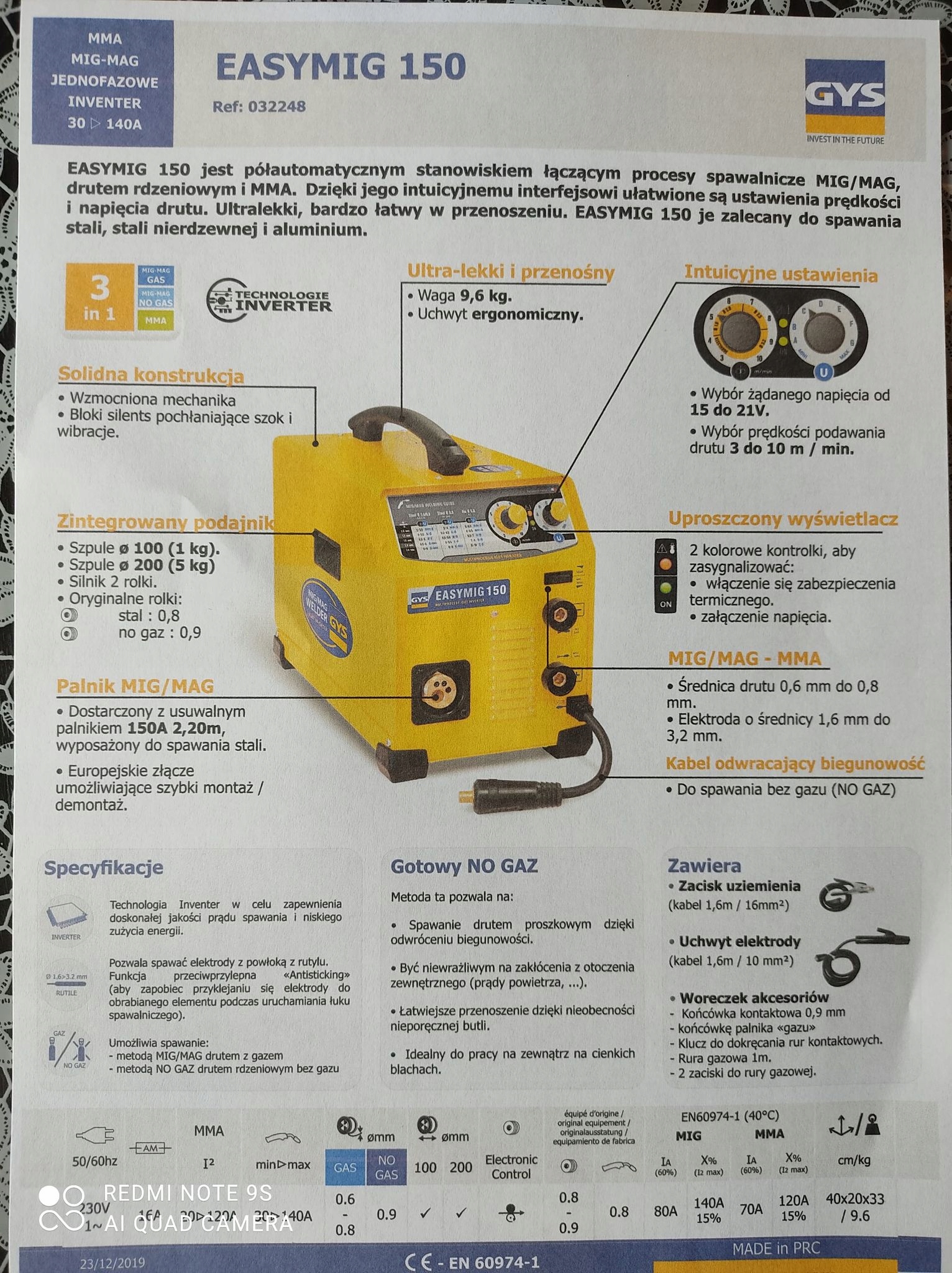 ЗВАРЮВАЛЬНИЙ АПАРАТ 3 В 1 GYS EASYMIG 150 MIG/MAG MMA 230V