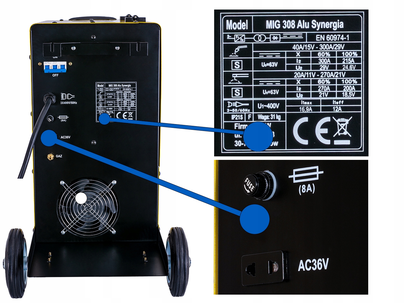 Migomat Magnum MIG 308 ALU SYNERGIA — профессиональный сварочный источник, изготовленный по инверторной технологии. Сварочный аппарат питается от трехфазной сети 400В и позволяет производить сварку током до 300А. Аппарат оснащен ЖК-дисплеем и интуитивно понятным, простым в использовании интерфейсом. используйте функциональную панель.