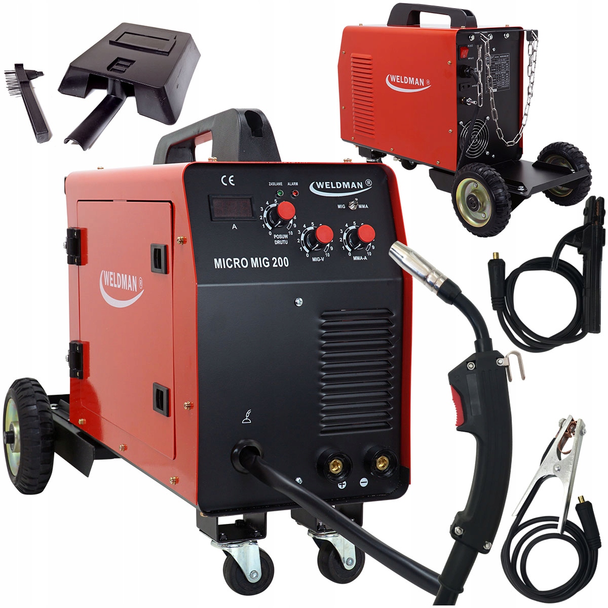 Производитель: WELDMAN ||| Методы сварки: MIG/MAG, флюс, MMA ||| Максимальный сварочный ток: 200А ||| Электропитание: 230 В, 1 фаза